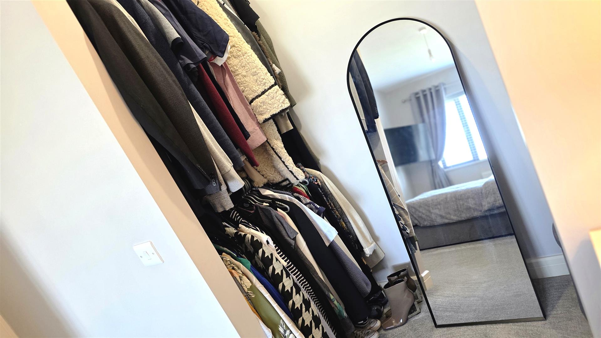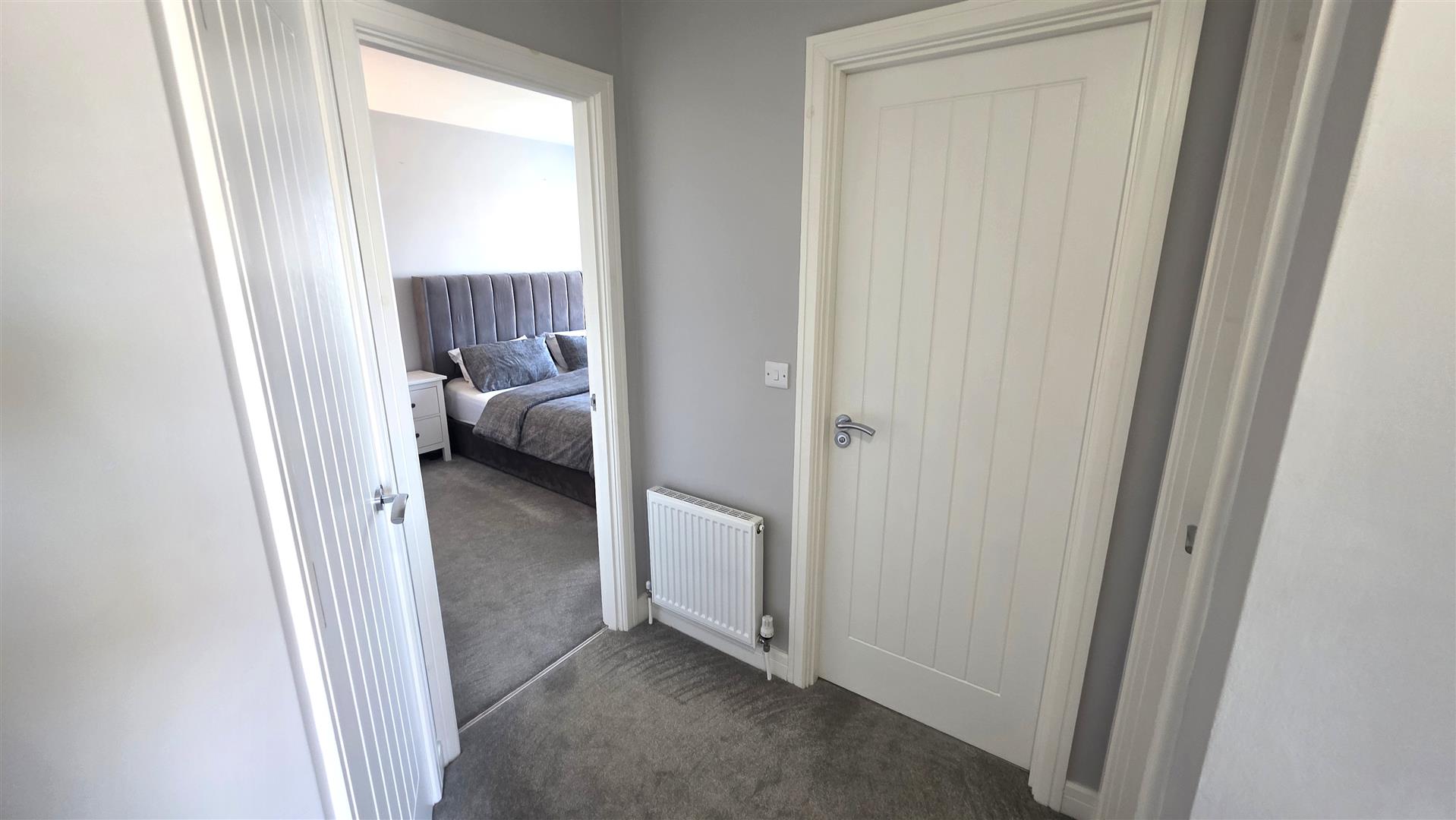 Storage cupboard with shelving. Access to loft. Single radiator.