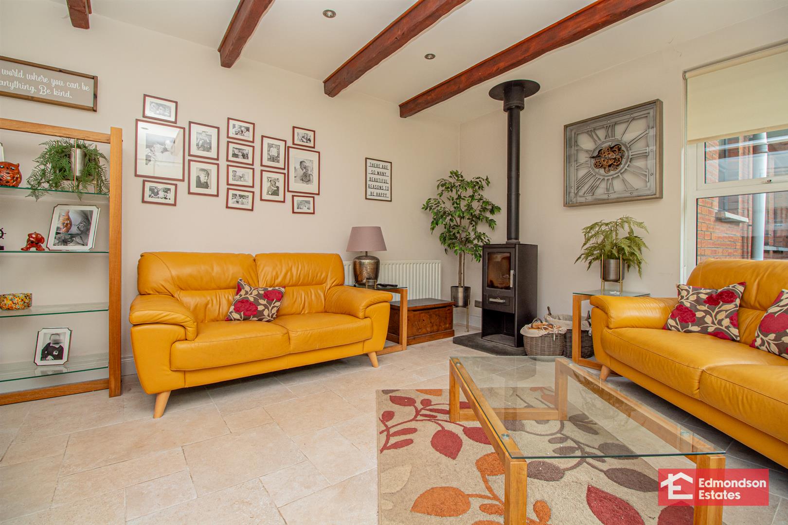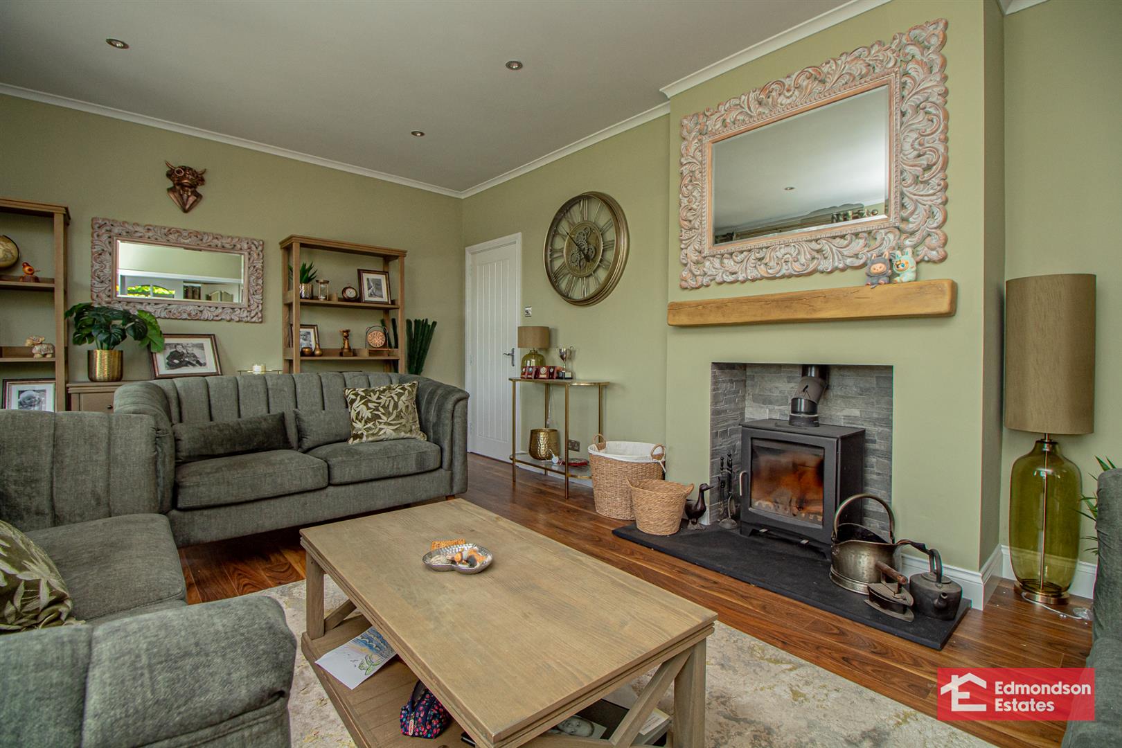 Multi fuel stove with mantle. Ceiling coving. Double doors to dining room. Laminate flooring.