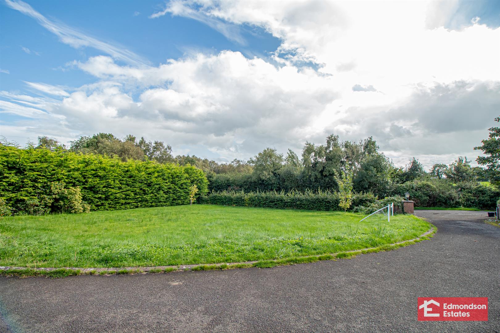 Tarmacked and gated driveway. Lit entrance pillars. Front gardens laid in lawns. Parking to side. Enclosed rear gardens laid in lawns. Septic tank. OFCH tank and boiler.