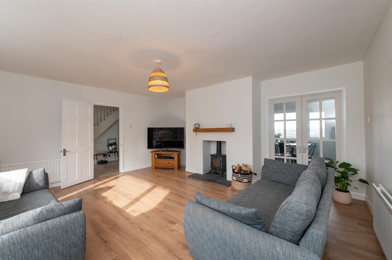 Composite front door, ceramic tiled flooring, wall panelling, hot press insulated copper cylinder