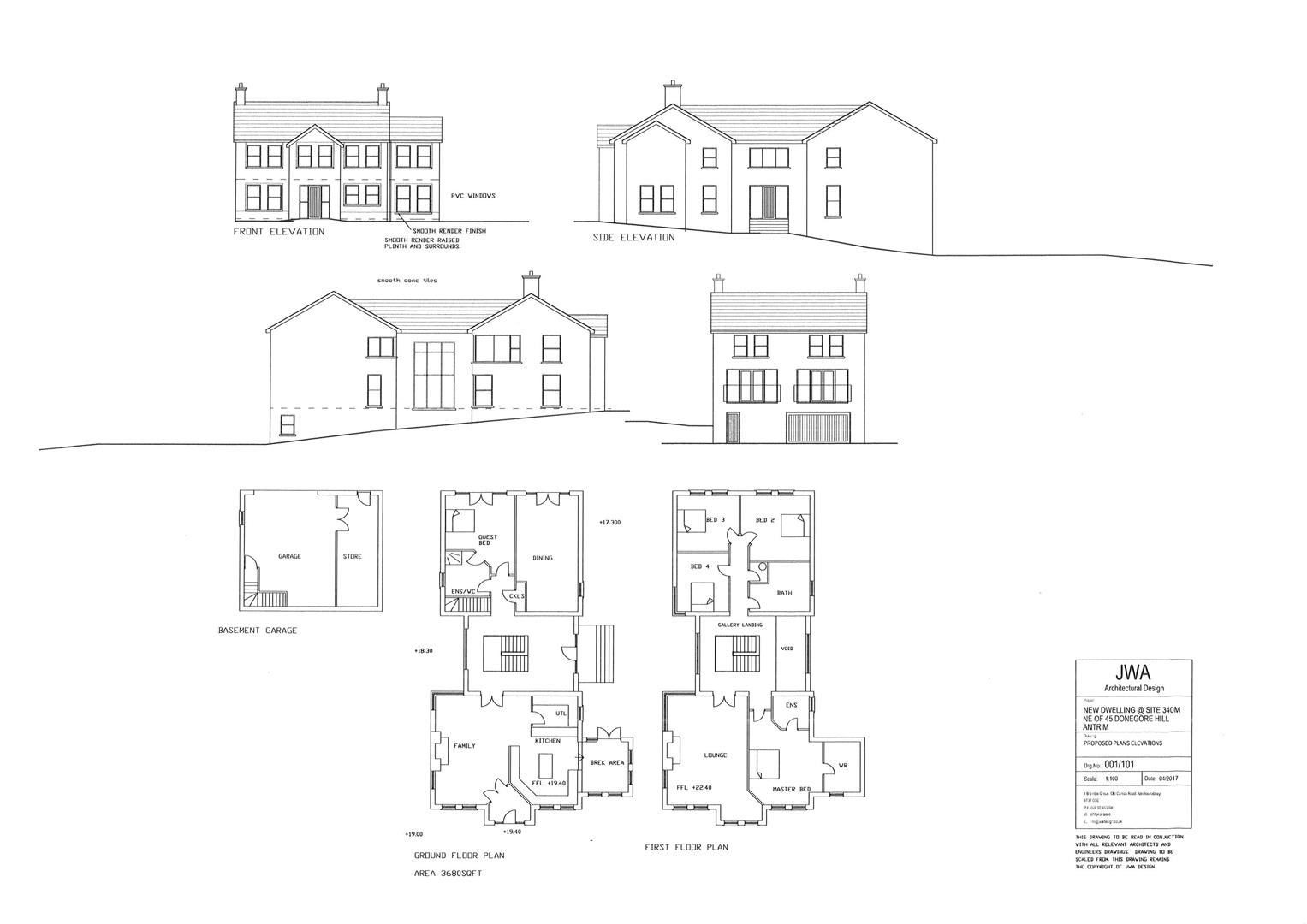 An excellent opportunity to acquire a superb building site with full planning permission for a substantial detached residence extending to approximately 3,680 sq ft. Situated on Donegor Hill, this elevated site offers the perfect setting to create a bespoke family home in a highly accessible and desirable location. The approved plans provide for a spacious and contemporary property, with generous accommodation designed to meet the needs of modern family living. The site is ideally positioned just 9 miles from Belfast International Airport and 5 miles from Templepatrick, offering convenience for commuters and frequent travellers alike. The surrounding area is renowned for its attractive rural landscape, while still benefiting from close proximity to local amenities, schools, and transport links. Rarely do opportunities arise to build such an impressive home in this sought-after location.