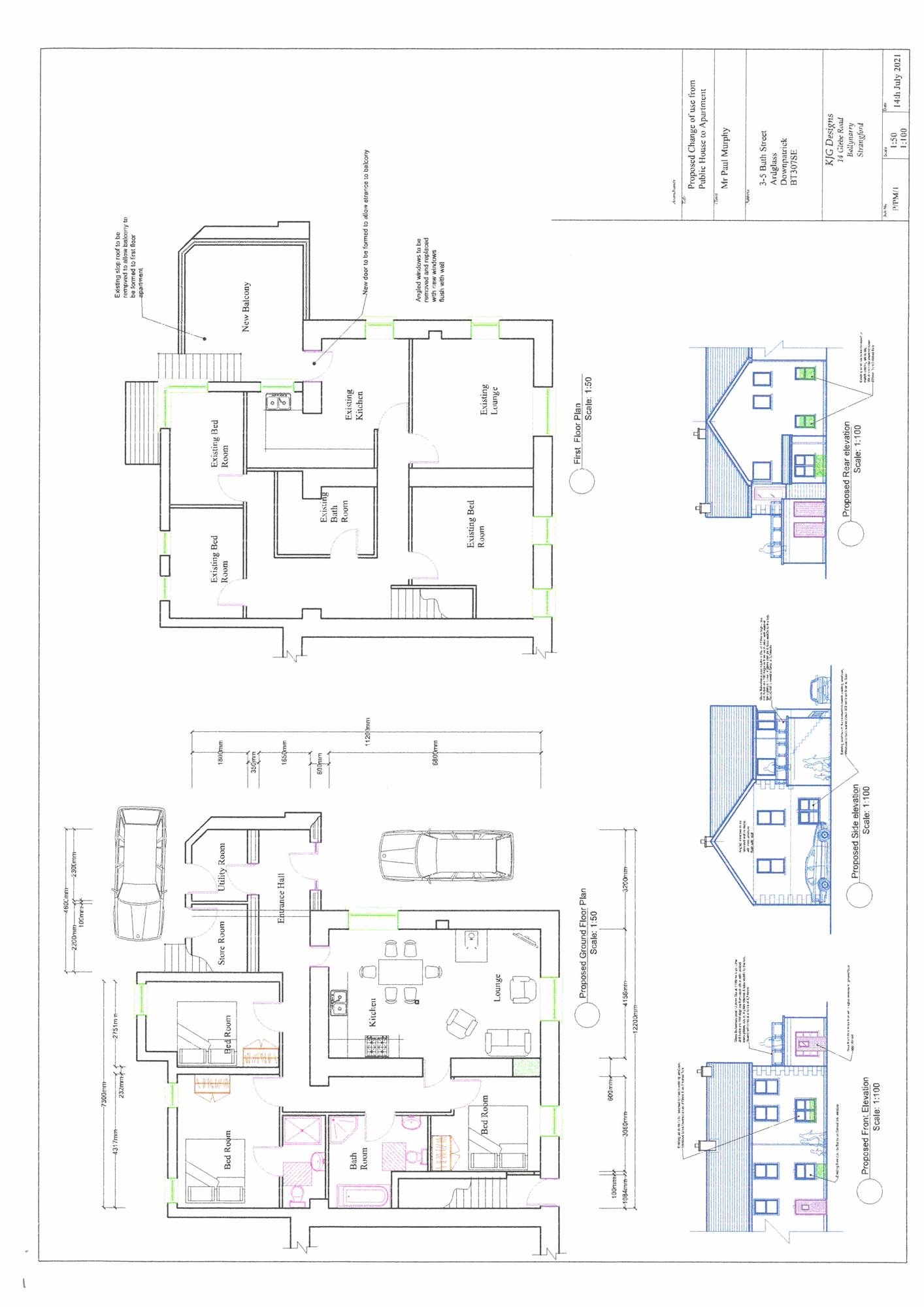 A development potential site for two apartment, change of use of public bar for apartment with erection of first floor balcony