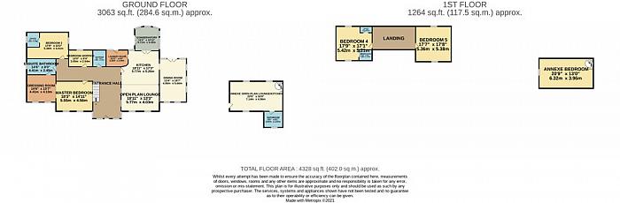 and would be ideal for those looking for an opportunity of running a business from the comfort of their own home as the property has an fully self-contained annex which has produced an lucrative income for the current vendor a home that pays for its self, what more could you ask for! The main property comprises of a spacious and bright entrance hallway with feature glass balustrades, extensive open plan lounge with large inglenook fireplace and cast iron stove, fabulous open plan contemporary kitchen with centre island and vaulted wood beam ceilings leading onto the formal dining area with fabulous countryside views and large conservatory that overlooks the south facing, sunny rear gardens. There are three bedrooms on the ground floor, the extensive master bedroom comes with walk in dressing room and spectacular ensuite with feature freestanding roll top bath, bedroom two also comes with ensuite and bedroom three is currently used as an office. Additionally there is a downstairs bathroom and fully equipped utility room. Upstairs has two large double bedrooms, one with separate shower room and WC. The annexe is currently used as a profitable Air BnB business and is set away from the property with its own entrance and car parking facilities. Internally it provides spacious and bright accommodation with open plan lounge, which can also be converted to a bedroom, fully fitted kitchen and bathroom on the ground floor and a double bedroom upstairs reached via cast iron spiral staircase. To the front of the property is a large gated driveway providing ample car parking for several cars, horse boxes etc and to the rear are substantial but perfectly maintained sunny south facing gardens with paved patio area, covered hot tub area surrounded by water feature and accessed by wooden bridge with stunning countryside viewswhat a way to spend an evening..perfect
