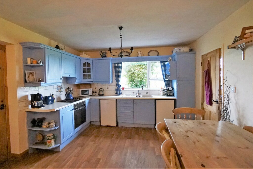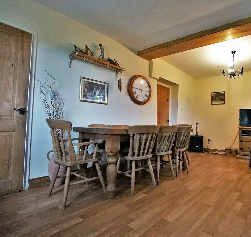 Ample range of fitted high and low level units. Plumbed for white goods. Wood flooring. Timber beam ceiling.