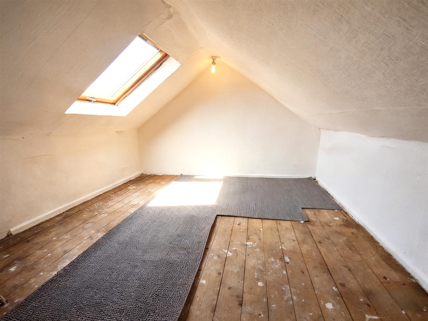 At widest, fixed staircase, under eaves storage, velux window,