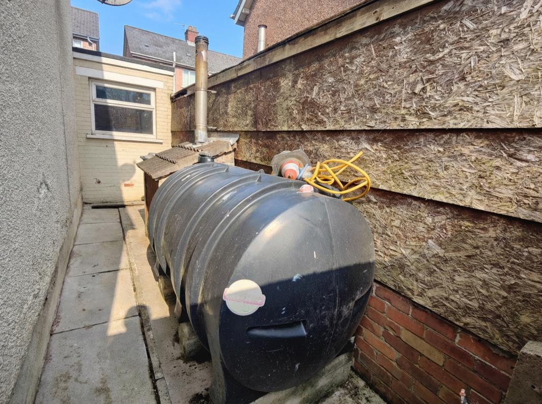 Hard landscaped front garden in brick paver, concrete pavers and stones, off street carparking, enclosed rear yard, pvc oil tank, boiler house.