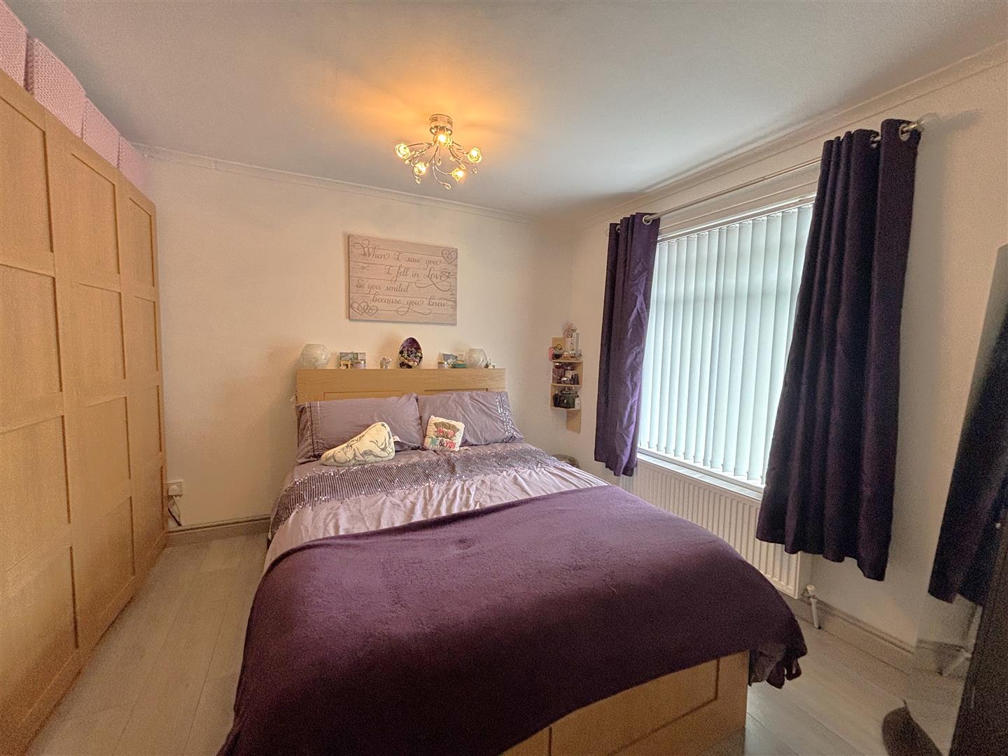 Wood laminate floor, double panelled radiator.