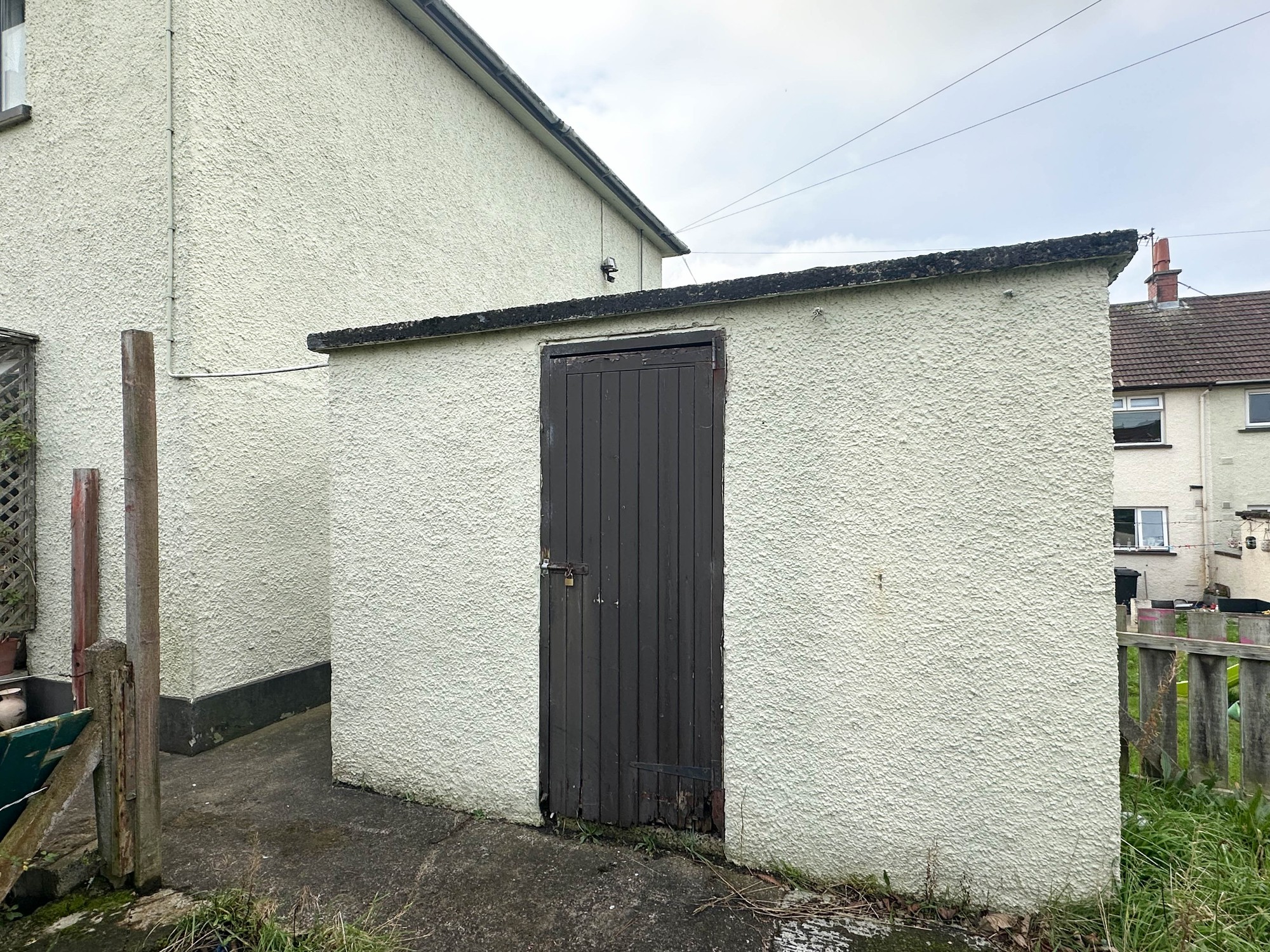 Concrete pedestrian path to side leading to front door. Exterior store. Communal parking on Lever Park.
