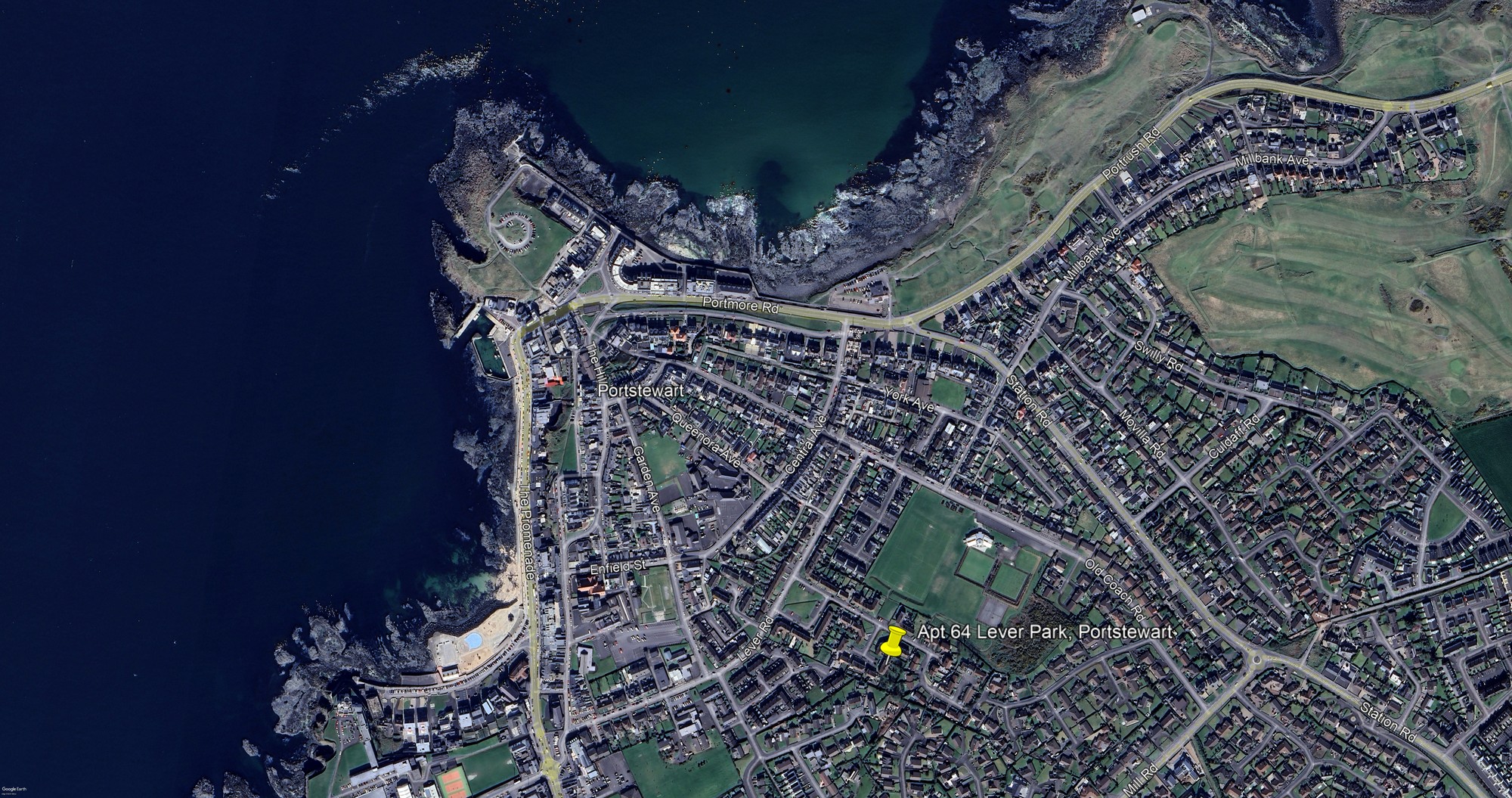 On approaching Portstewart along the Coleraine Road, turn right at the Diamond roundabout onto Church Street, then first right onto Lever Road, then take the second right onto Lever Park and Number 64 is situated on the left hand side.