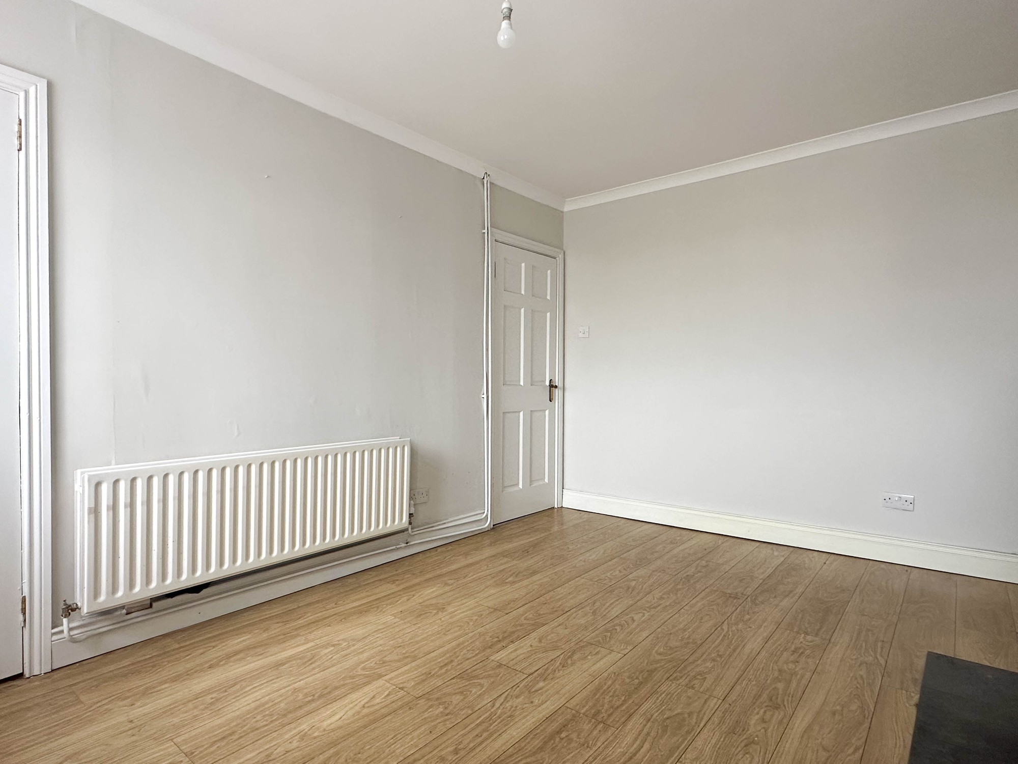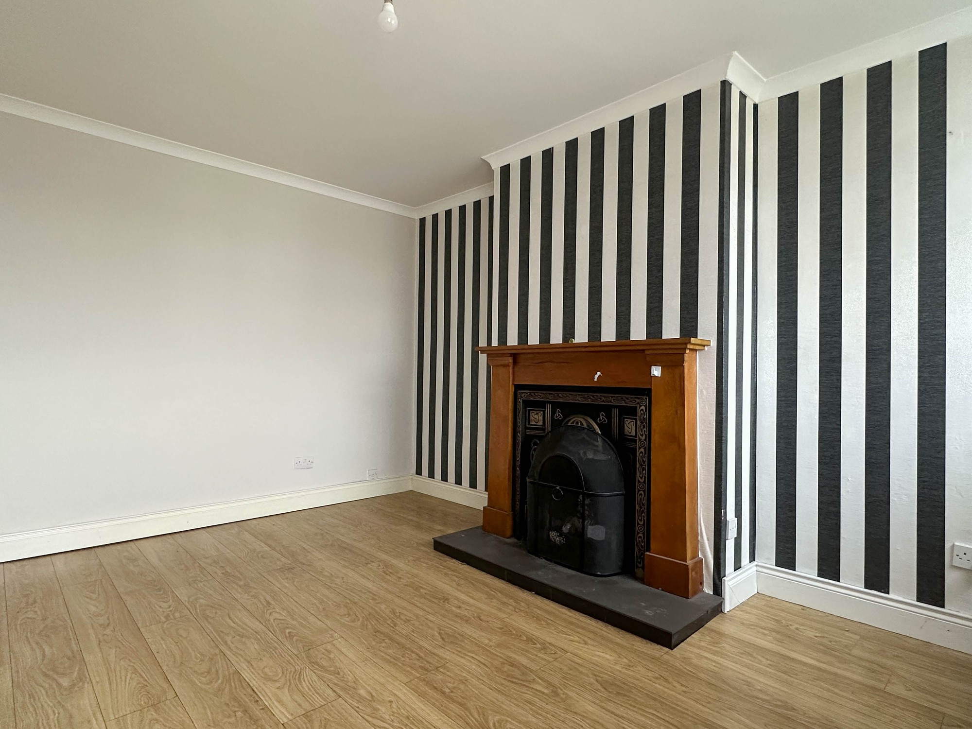 with wooden surround fireplace with cast iron inset and tiled hearth, laminate flooring, television point and storage cupboard.
