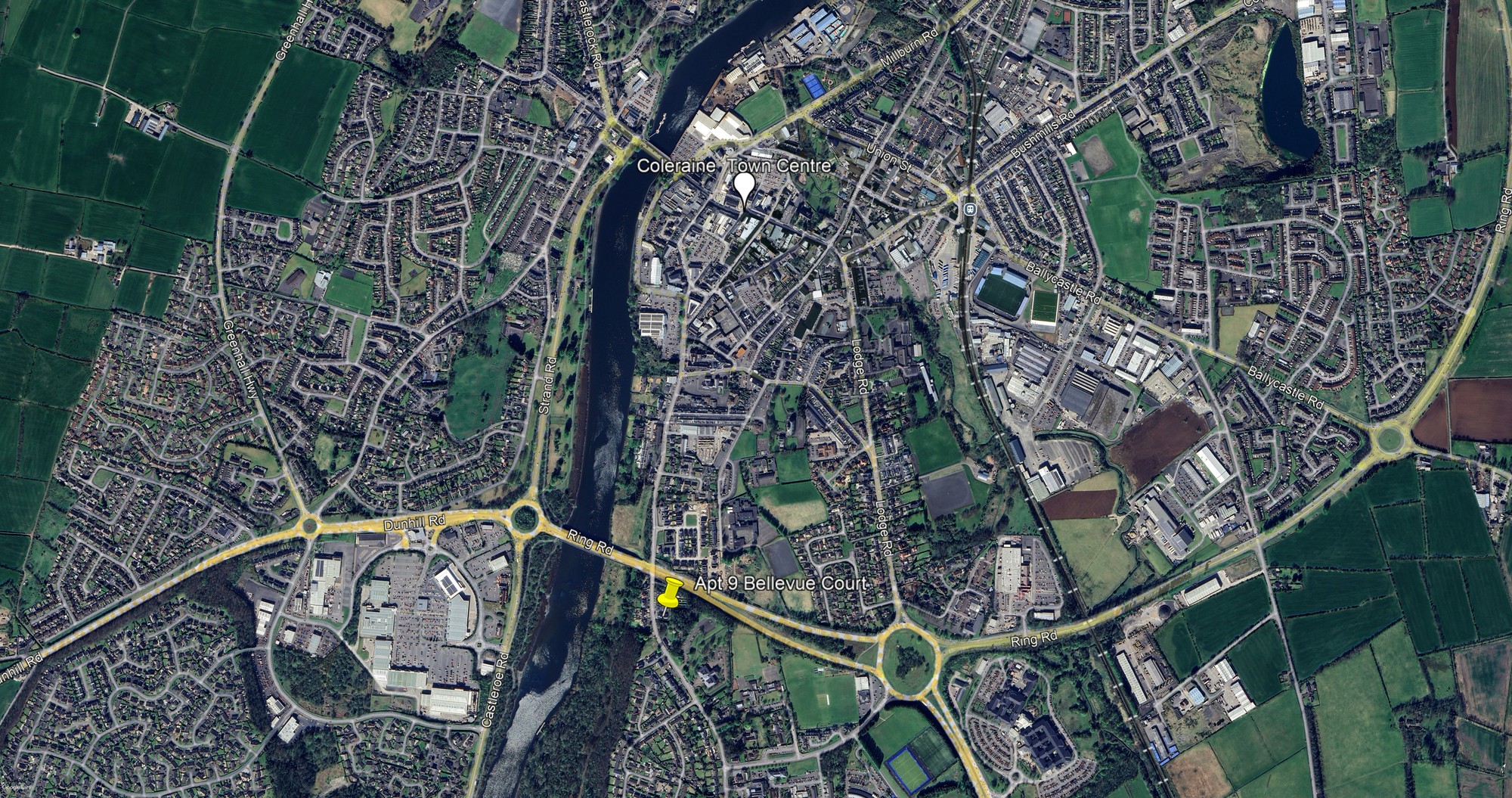 On leaving Coleraine along the Mountsandel Road, just before the Coleraine Court House, Bellevue Court is situated on the left hand side.