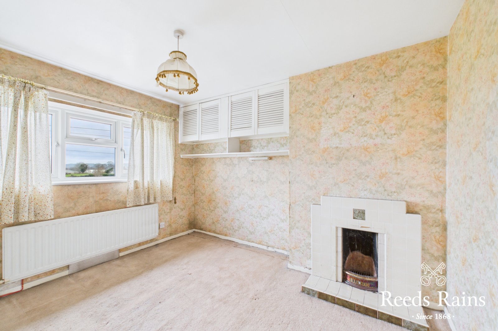 Feature fireplace, views over neighbouring fields.