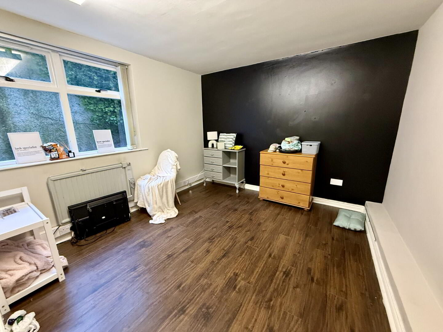 Office / Treatment Room 2 offers additional flexible accommodation, while a large rear office enjoys an external window and is finished with wood-effect flooring, creating a distinct and practical workspace.