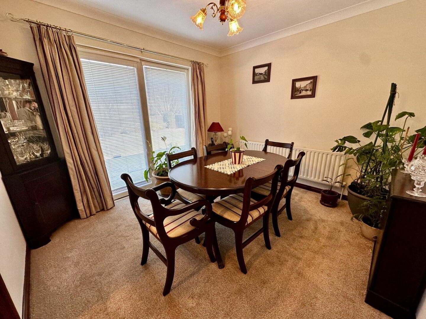 A well-proportioned dining space, laid in carpet, with patio doors that open to the rear garden. Also offering access to kitchen.