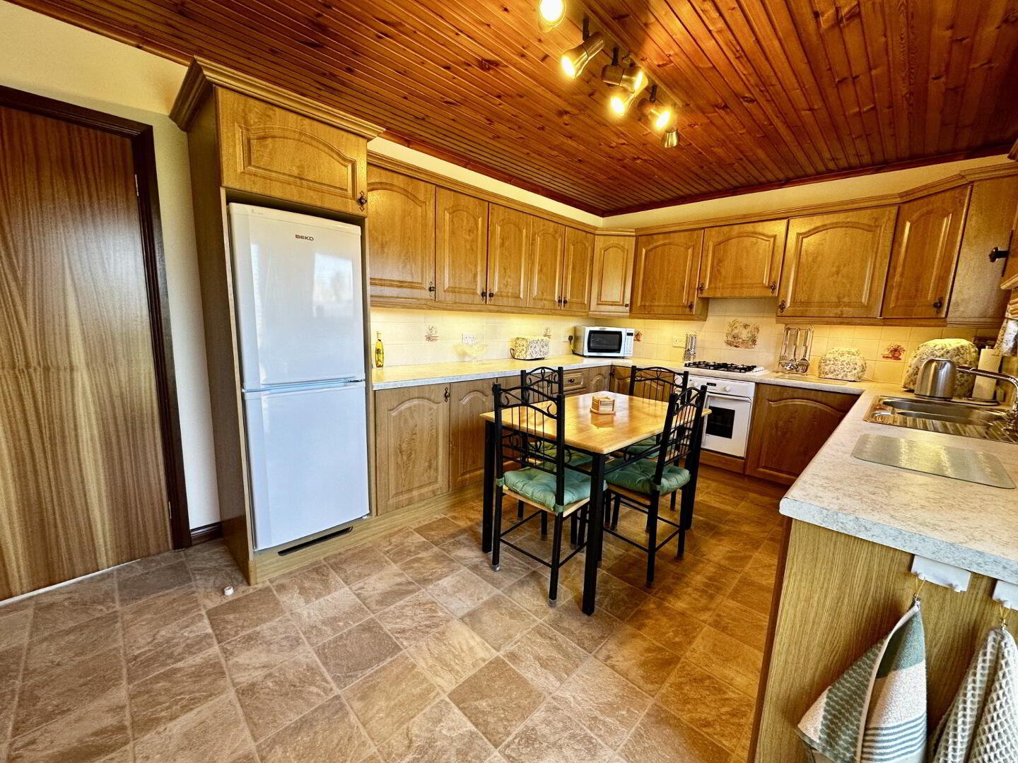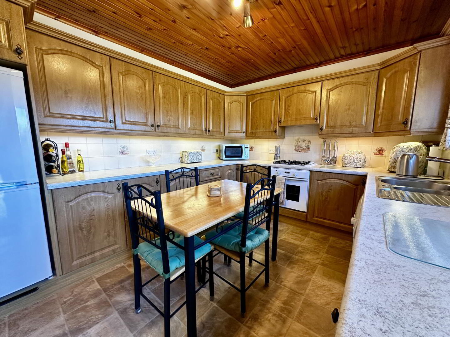 Located to the side of the house, the detached garage is fully wired and offers a remote-controlled electric roller door for convenience. It is sizeable for one car with additional storage space and also houses the boiler.
