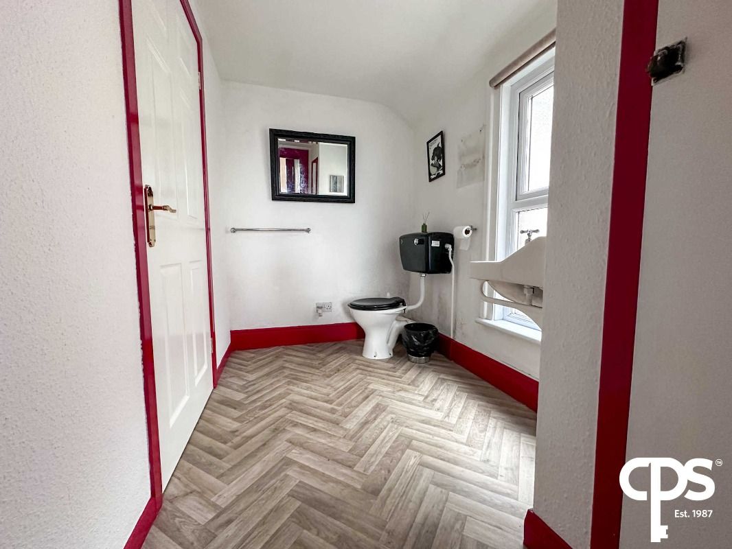 The bathroom comprises of a two piece suite to include W/C and wash basin while being fitted with wooden effect flooring throughout.
