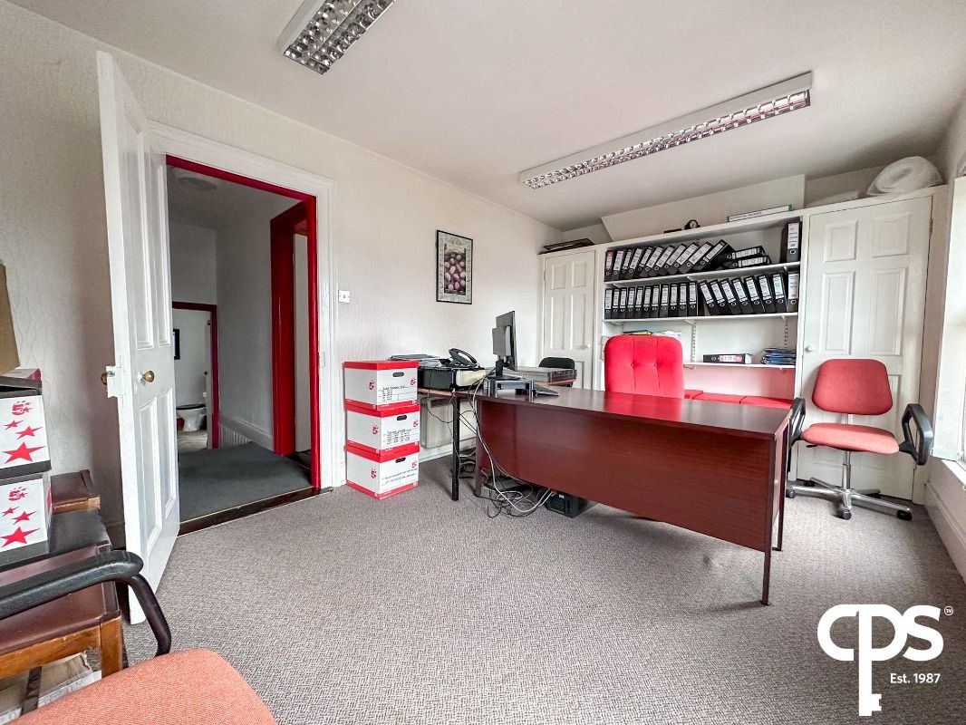The third office to be found on the ground comes with carpeted flooring throughout and currently houses an electric powered radiator. The office presents ample space for two sizeable desks and filing cabinets.