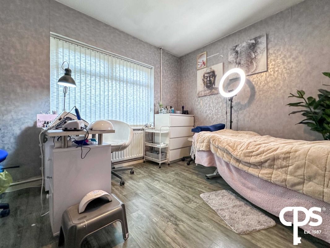 The spacious double downstairs bedroom which is currently being utilised as a beauty salon has the versatility to be used as a home office space if required. The bedroom comes fitted with wooden effect flooring throughout and has electrical sockets and a panelled radiator fixed within.
