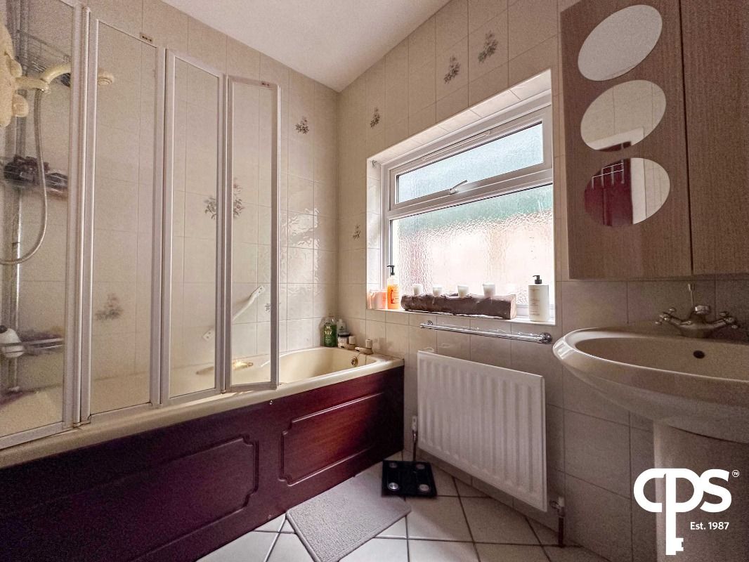 The downstairs bathroom comprises of a two piece suite to include hand wash basin and shower with an electric shower head fitted within. The bathroom comes with tiled flooring throughout with fully tiled décor surrounding and has been fitted with a single panelled radiator.