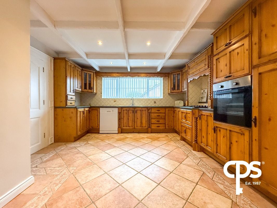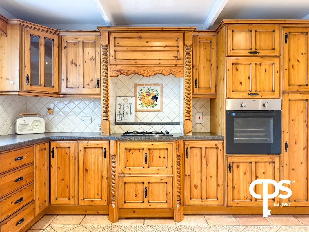 Bright and well-proportioned kitchen and dining area finished with tiled flooring and fitted with a range of high- and low-level units. The kitchen includes an integrated gas cooker and integrated oven, and provides ample space for a fridge freezer and dishwasher. A radiator is fitted, ensuring warmth throughout the space.