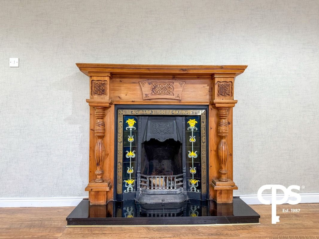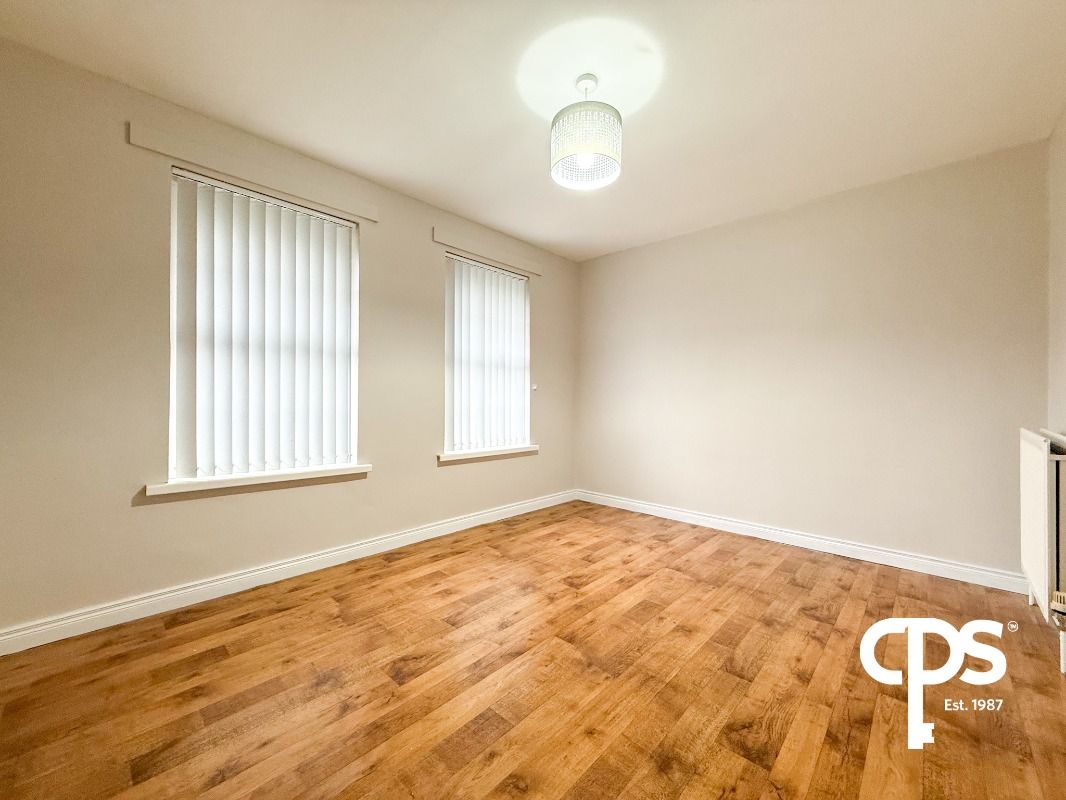 Spacious front-facing reception room featuring wooden flooring, an open fire, and two double radiators, providing excellent heat distribution and a comfortable living space.