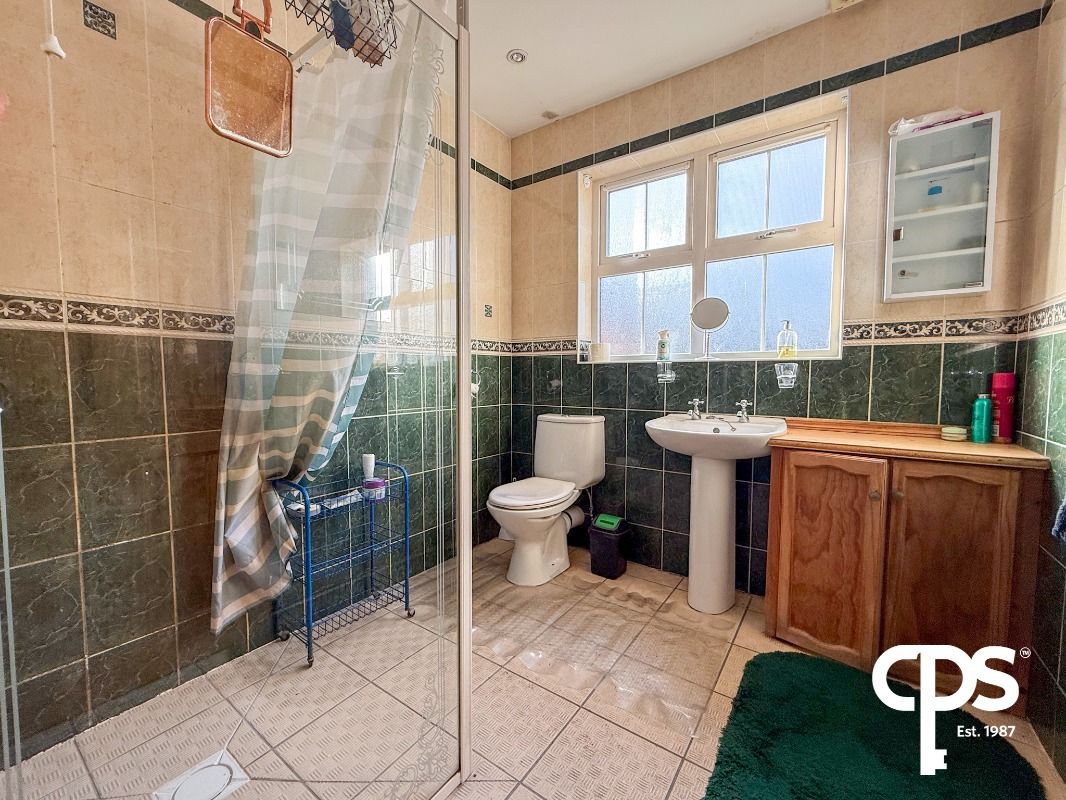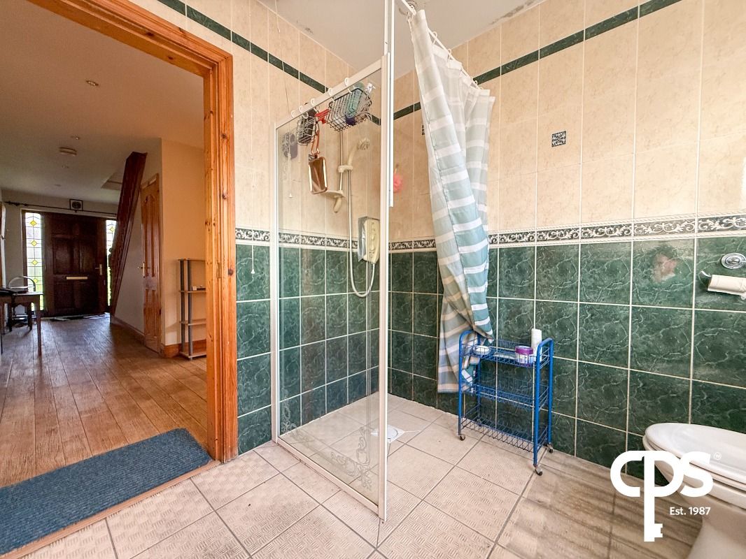 Fully tiled with walk-in shower, WC, wash hand basin, and double radiator.
