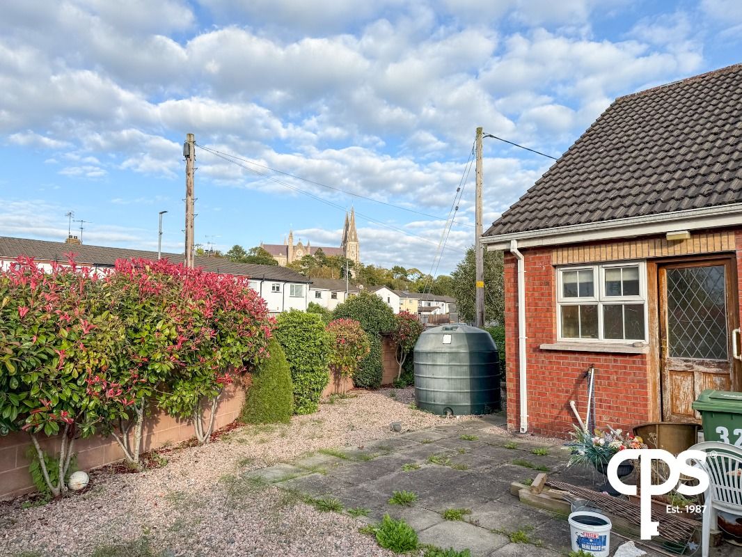 To the rear, the property offers an extensive enclosed garden with patio area, full wraparound access, and a concrete base for garage construction – perfect for future development.