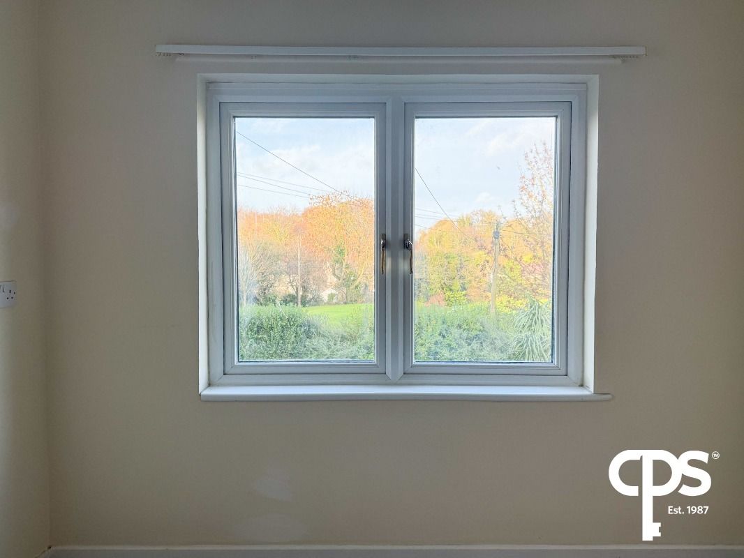 A spacious ground-floor double bedroom accessed from the living room, offering attractive views over the neighbouring playing fields.