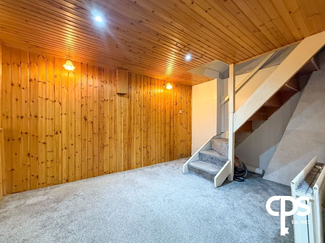 A peaceful and versatile lower-level living area situated at the foot of the stairs, with access to the kitchen and family bathroom—ideal as a second lounge or snug.