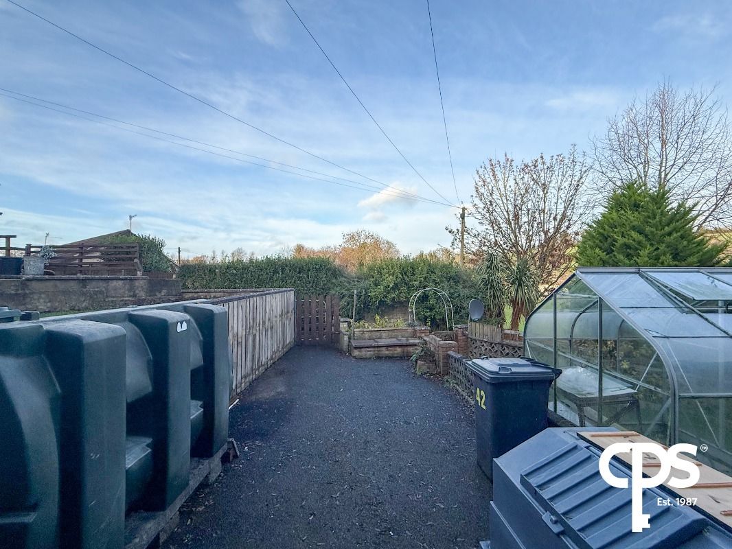 The property is accessed directly from the roadside. To the rear sits a compact, low-maintenance tarmac yard housing the oil tank and the newly fitted combi boiler.