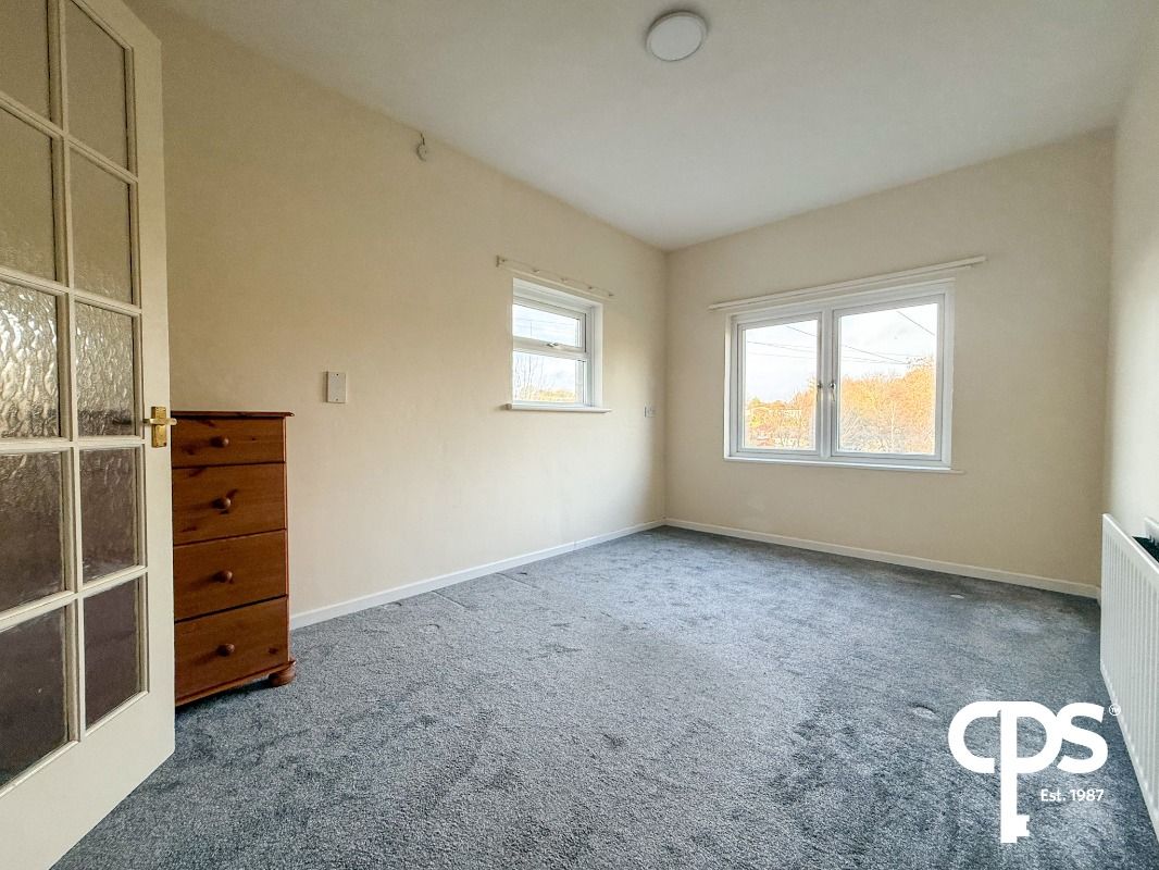 Rear-facing double bedroom with carpet flooring, suitable for a family member, guest room, or home office.