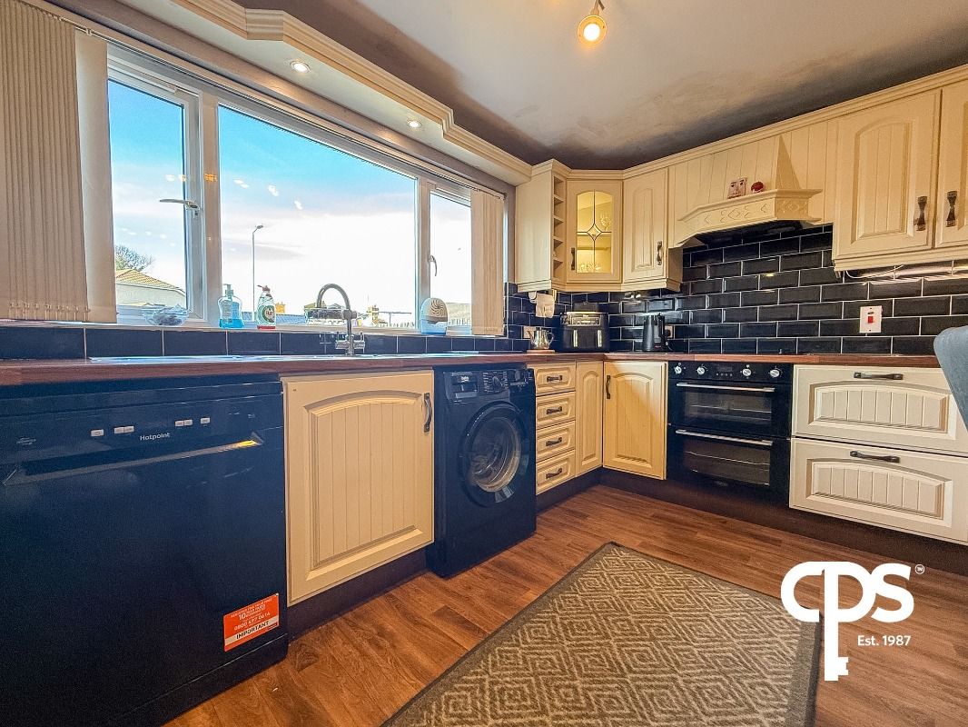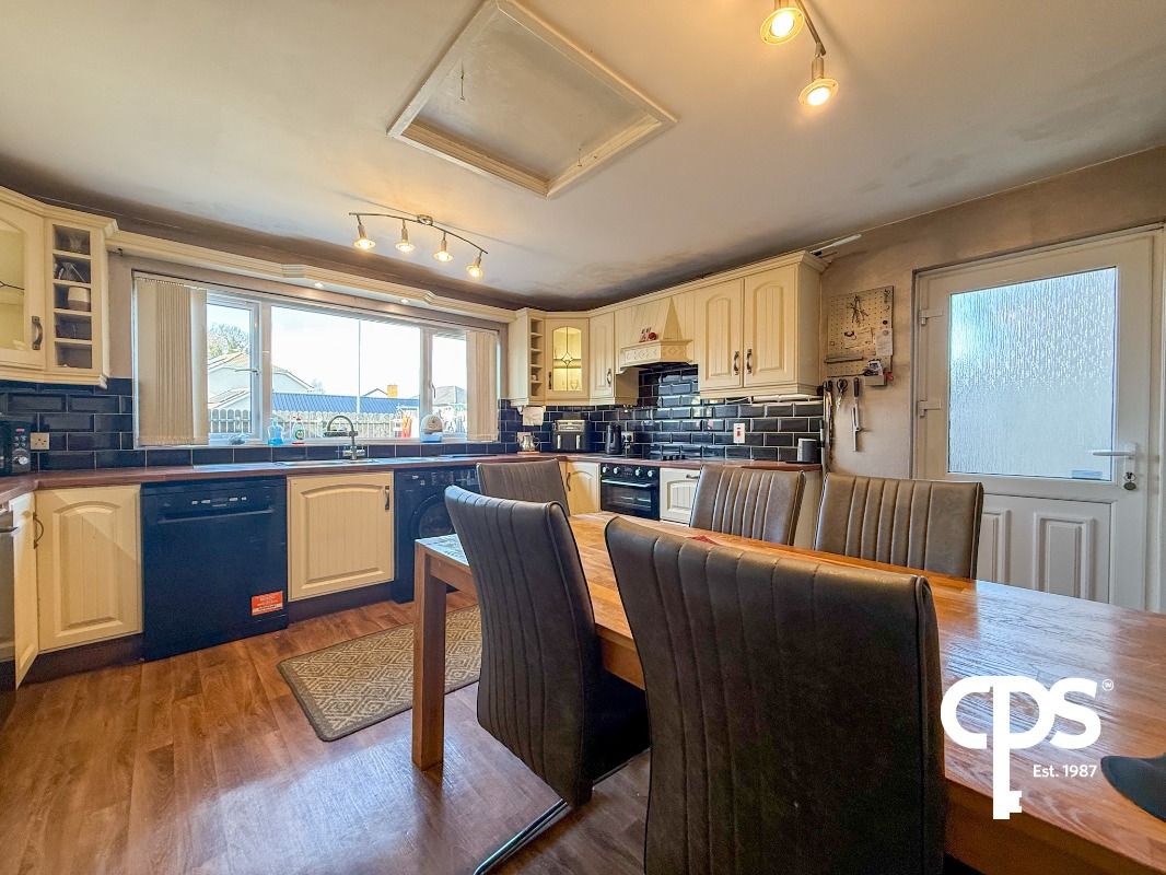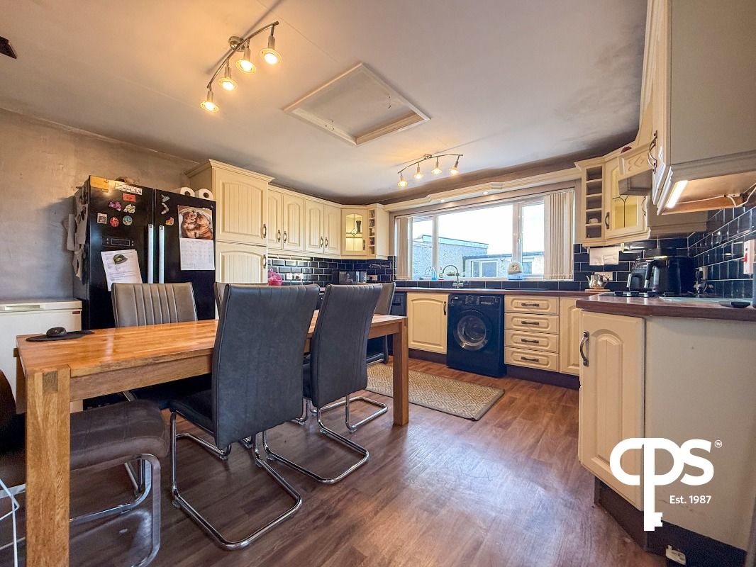 Spacious kitchen fitted with high and low-level units and plumbed space for washing machine, tumble dryer and double fridge. Features an induction hob with oven and grill, extractor fan overhead and stainless steel sink. Ample dining space with access to the rear garden.