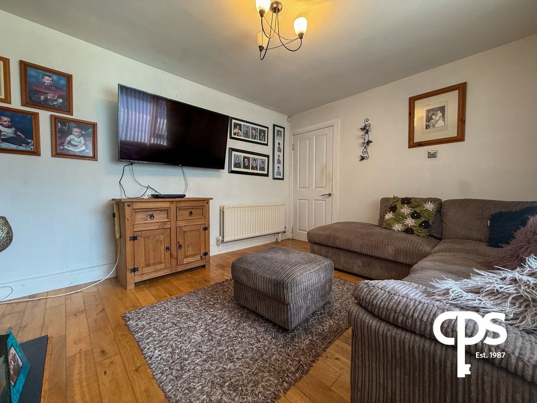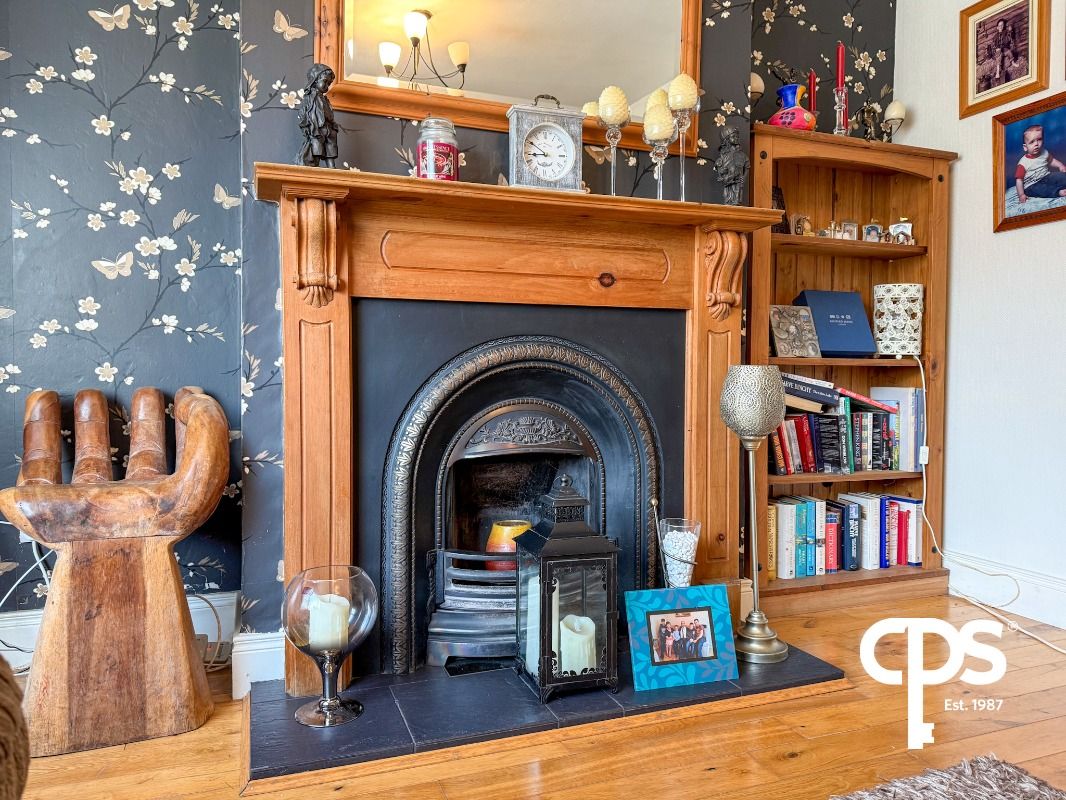 Front-facing living room featuring wooden flooring, open fire and double radiators. A bright and comfortable space ideal for everyday living.