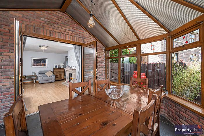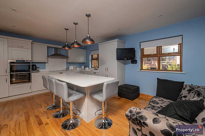 Boasting four bedrooms master with en-suite, two reception rooms to include a fabulous glass sun-room. The bespoke kicthen is finished with a fabulous centre island and offers an informal dining space with over hang for chairs. This property is an excellent family home finished to a high standard throughout. Externally the property is surround with pavers with gate access at both side. Private parking to the front. This property must be seen to be appreciated please contact our office to arrange your private viewing.