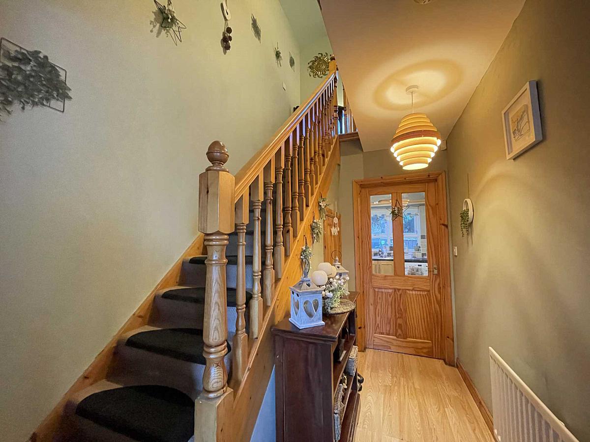 Entered via PVC door to hallway with laminate wooden floor, understairs storage and WC off.