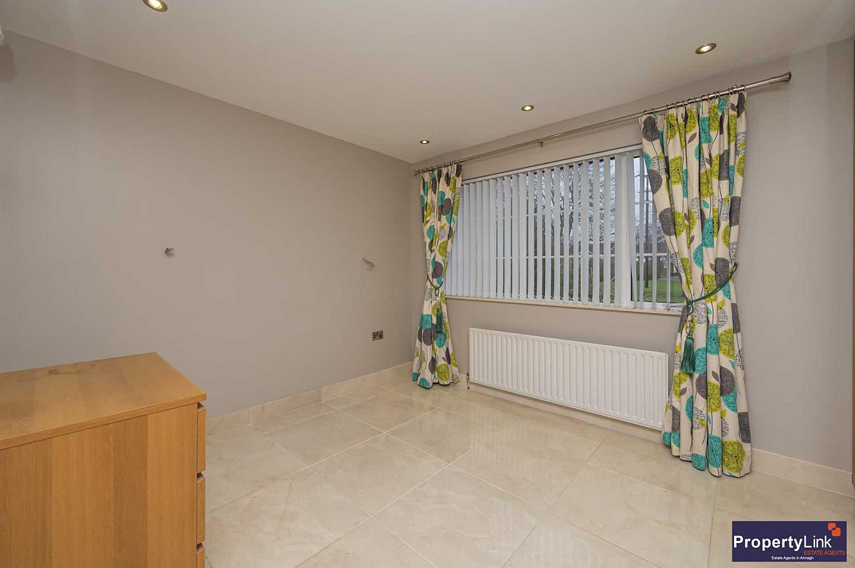 Generous double bedroom offering rear aspect window views and marble tiled floor.