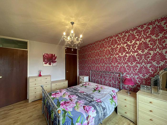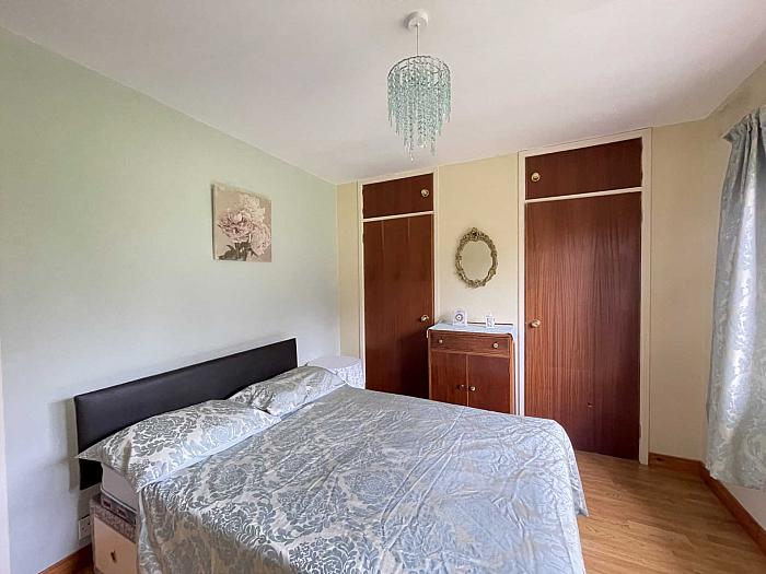 Generous double bedroom offering rear aspect window views, laminated wooden floor and built in wardrobes.
