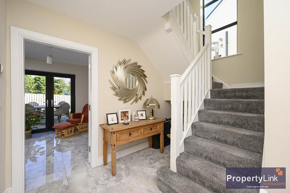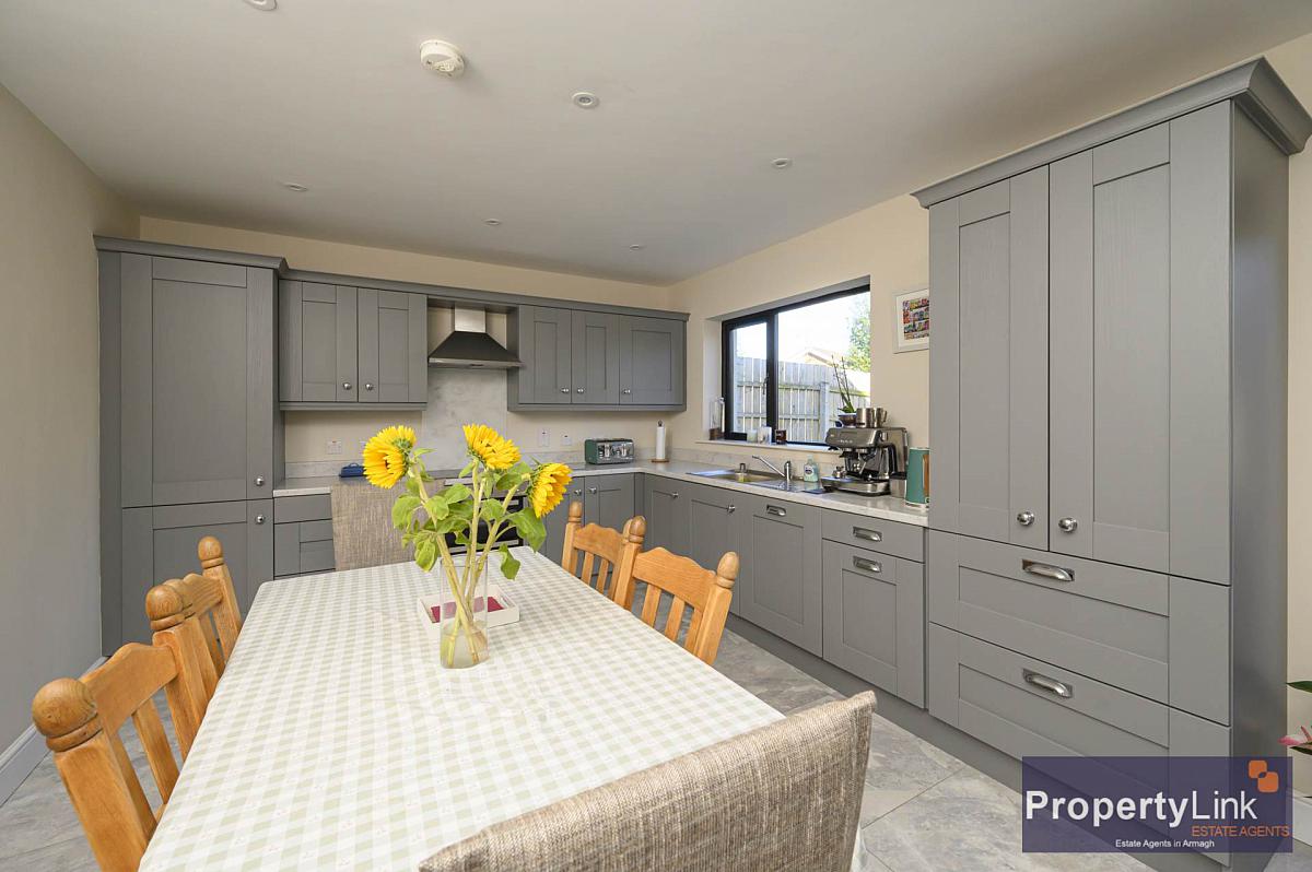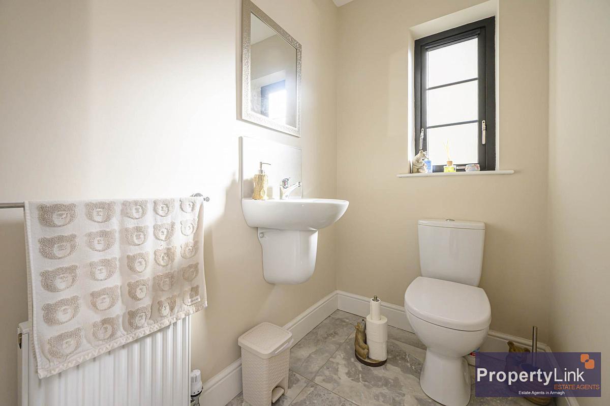 Resting in a quite development just of the Portadown road on the outskirts of Armagh City centre is this fabulous detached family home.This property is a credit to its current owners and has quality fixture and fittings throughout. The ground floor offers a spacious sitting room , toilet, walk-in cloakroom, beautiful kicthen/dining space and utility room off. The staircase leads you to the 1st floor boasting four bedrooms master with en-suite facilities and family bathroom. Externally the property is situated on the most desirable site and offers a private rear garden and patio area enclosed with panel fencing and gate access to the front driveway which is lead in tarmac offering private parking. Please contact us to arrange your private viewing.