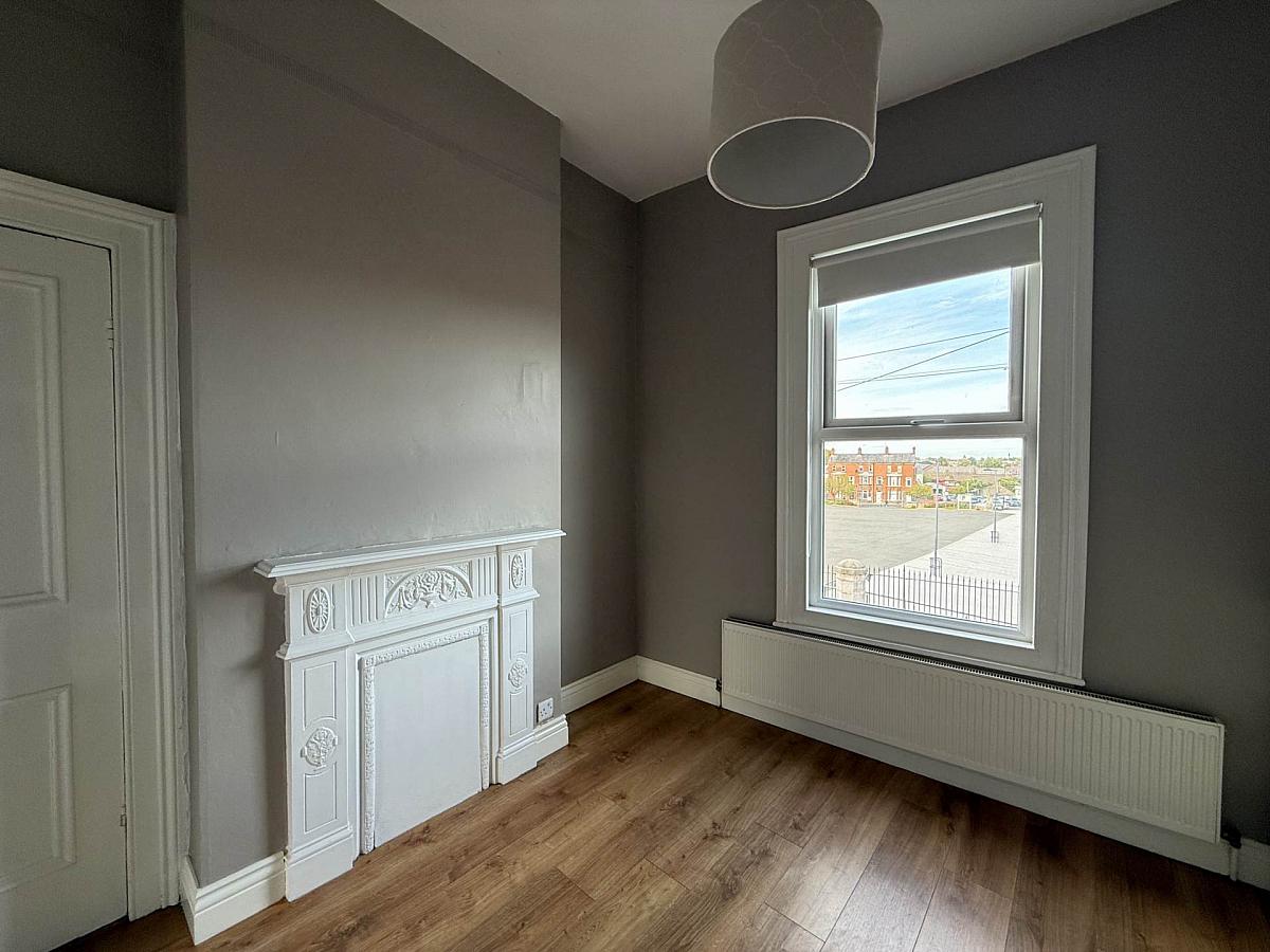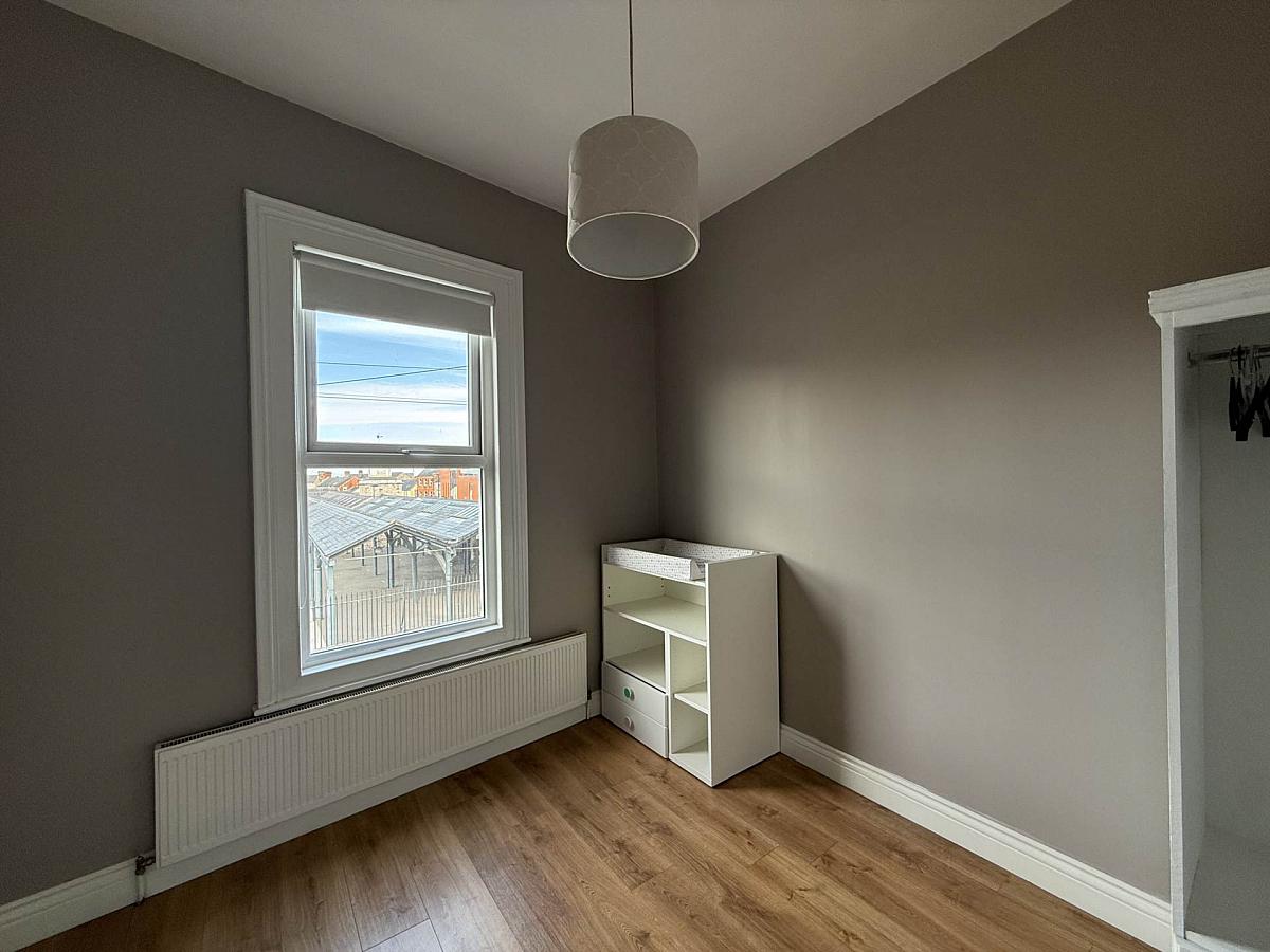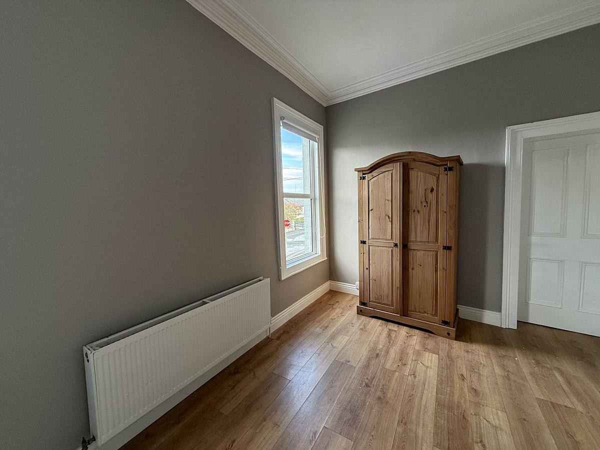Generous bedroom offering side aspect window views, laminate wooden floor and ample space to house double bed.
