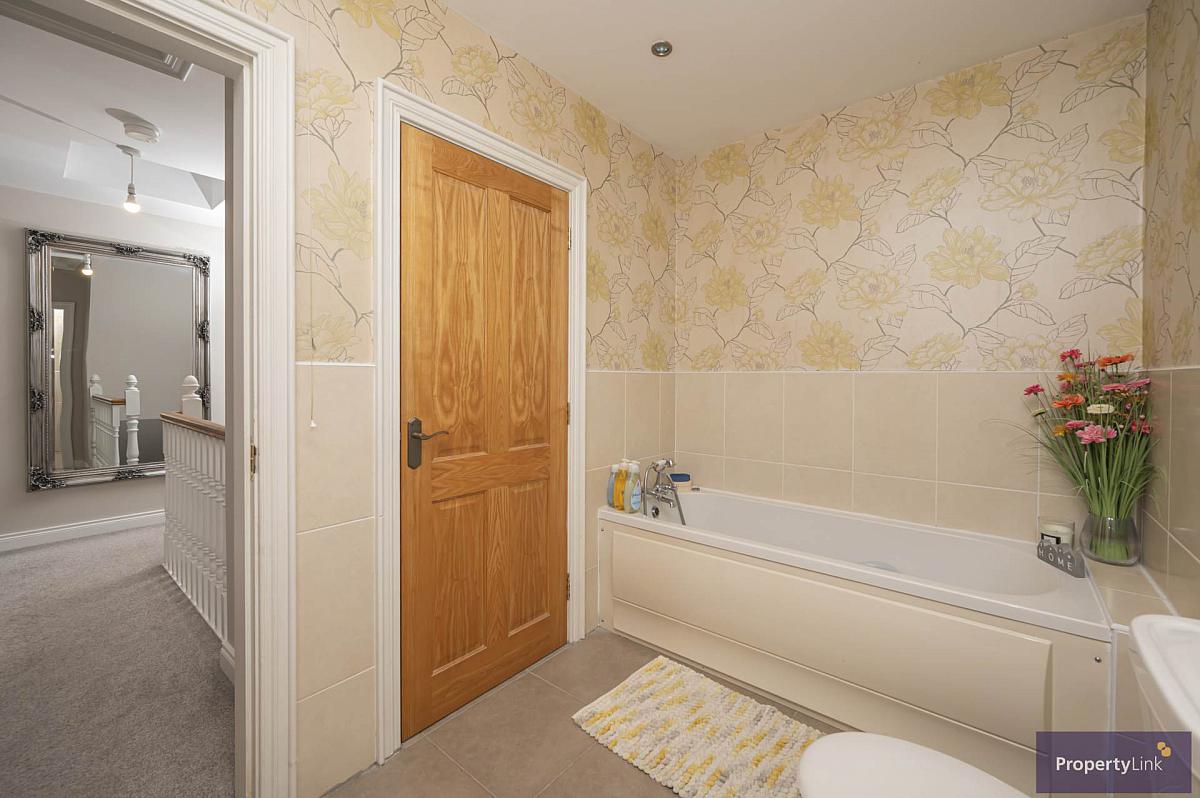 Generous double bedroom offering rear aspect window views, ample space to house double bed, carpet floor covering and ensuite to include shower, pedestal wash hand basin, low flush WC and ceramic tiled floor