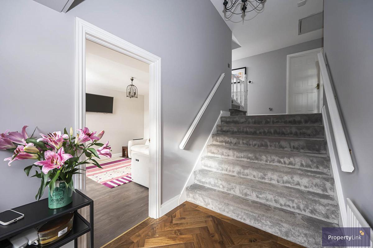 Situated in the highly desirable Drumman Heights development, this beautifully presented four bedroom detached home offers spacious, modern family living in one of Armagh`s most sought after areas. The property features two bright and welcoming reception rooms, a contemporary kitchen with dining area, and four well proportioned bedrooms, including a master with ensuite facilities. A stylish family bathroom and spacious integral garage. To the rear, a south facing garden enjoys sunshine throughout the day, complemented by a patio area that`s perfect for entertaining or relaxing outdoors. This home also benefits from a beautifully maintained exterior, adding to its overall charm and appeal. A garden room, currently used as an outdoor office and gym, offers an excellent additional space for someone working from home or leisure and can be purchased as an optional extra. Combining modern comfort, generous living space, and a prime location close to local schools, shops, and transport links, 1 Drumman Heights presents an exceptional opportunity for families seeking their forever home in Armagh. For more information on this property or to arrange a viewing, contact our office, 02837511166.