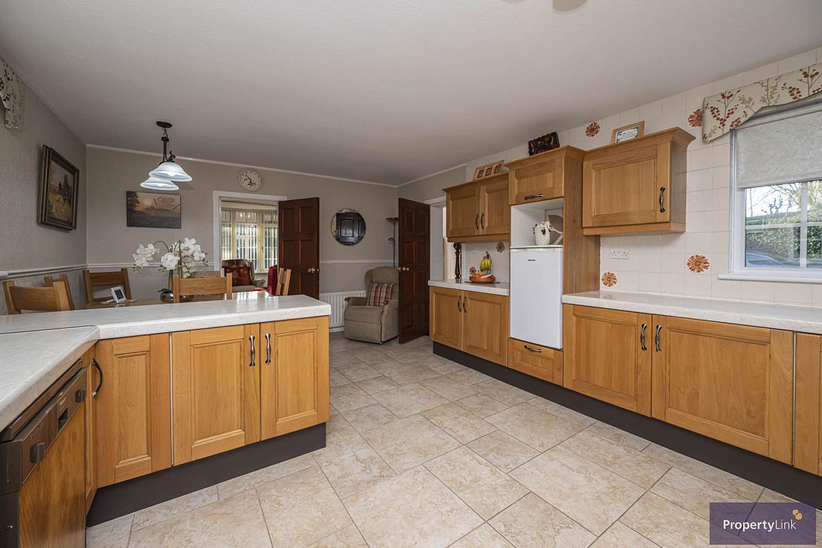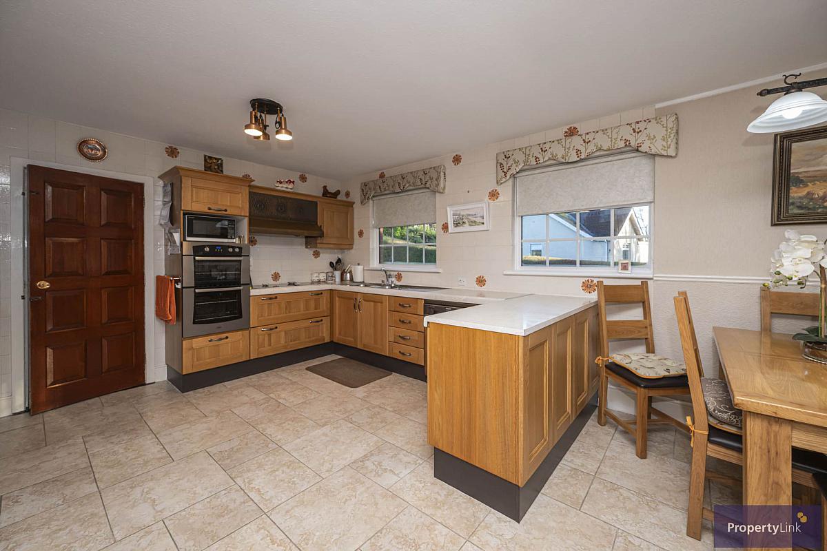 Composing of high and low level fitted units to include stainless steel sink and drainer, intergrated dishwasher, space to house microwave and fridge/freezer, high level double oven, electric hob with extractor fan over, side aspect window views, ample space to house dining table and ceramic tiled floors.