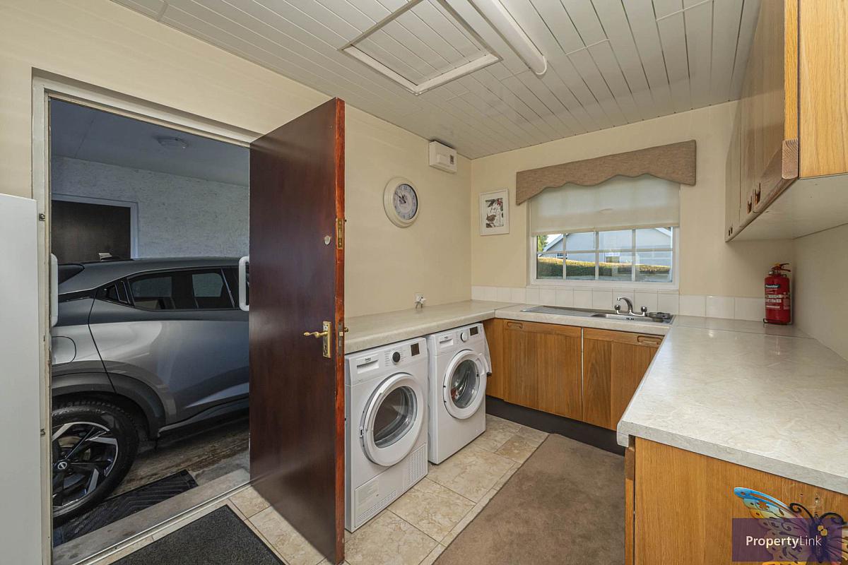 Offering high and low level fitted units to include space to house two auto-washers, side aspect window views, ceramic tiled floors and rear door leading to outside.