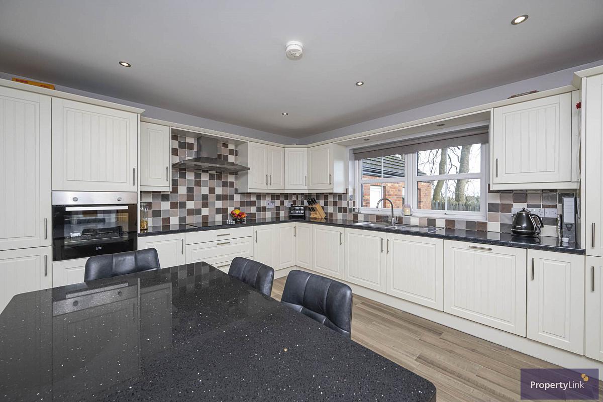 High and low fitted units to include stainless steel sink and drainer, high level oven with electric hob and extractor fan over, intergrated dishwasher and fridge/freezer, ceramic tiled floor, and ample space to house dining table.