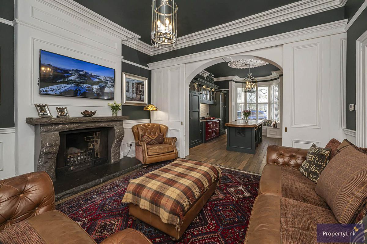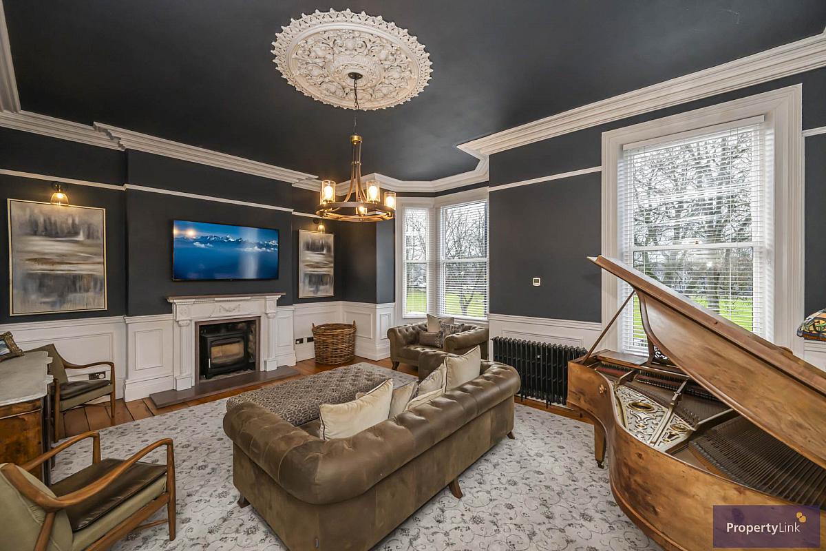 Filled with warmth and character offering a striking feature fireplace made from Armagh stone with open fire, open plan to the kitchen via sliding doors, an elegant setting for everyday living or entertaining.