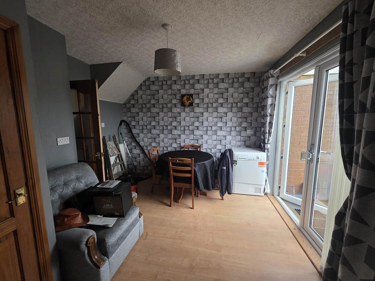 Rear aspect room with french doors leading to the outside patio, laminate wooden floor and hot press off.