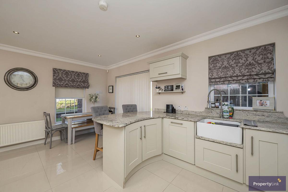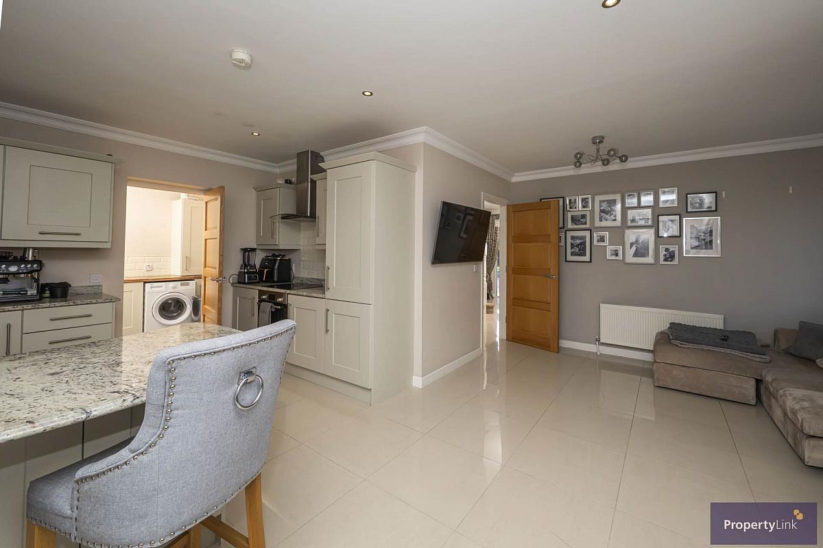 1 Spinners Court, Armagh is an impressive four bedroom detached home set on a generous corner plot within a quiet and highly desirable residential development. Offering spacious, flexible accommodation throughout, this property is perfectly suited to modern family living. The ground floor boasts two well proportioned reception rooms, ideal for both relaxing and entertaining, along with a bright and welcoming kitchen/dining area that forms the heart of the home. This space is perfect for everyday family life as well as hosting guests, with excellent natural light and a practical layout. A separate utility room adds valuable additional storage and laundry space, keeping the main living areas clutter free. Upstairs, the property offers four comfortable bedrooms, providing ample space for families of all sizes, home working, or guest accommodation. The home is further enhanced by three bathroom facilities, ensuring convenience and comfort for busy households. Externally, the large corner plot sets this property apart, offering generous outdoor space with excellent potential for gardening, play areas or outdoor entertaining. The setting combines privacy with a convenient location, close to local schools, amenities and transport links. This is a superb opportunity to acquire a spacious, well laid out family home in a sought after area of Armagh. For more information on this property or to arrange a private viewing, contact our office, 02837511166.
