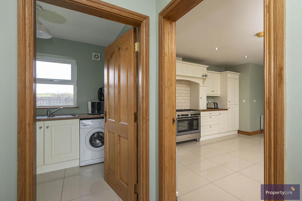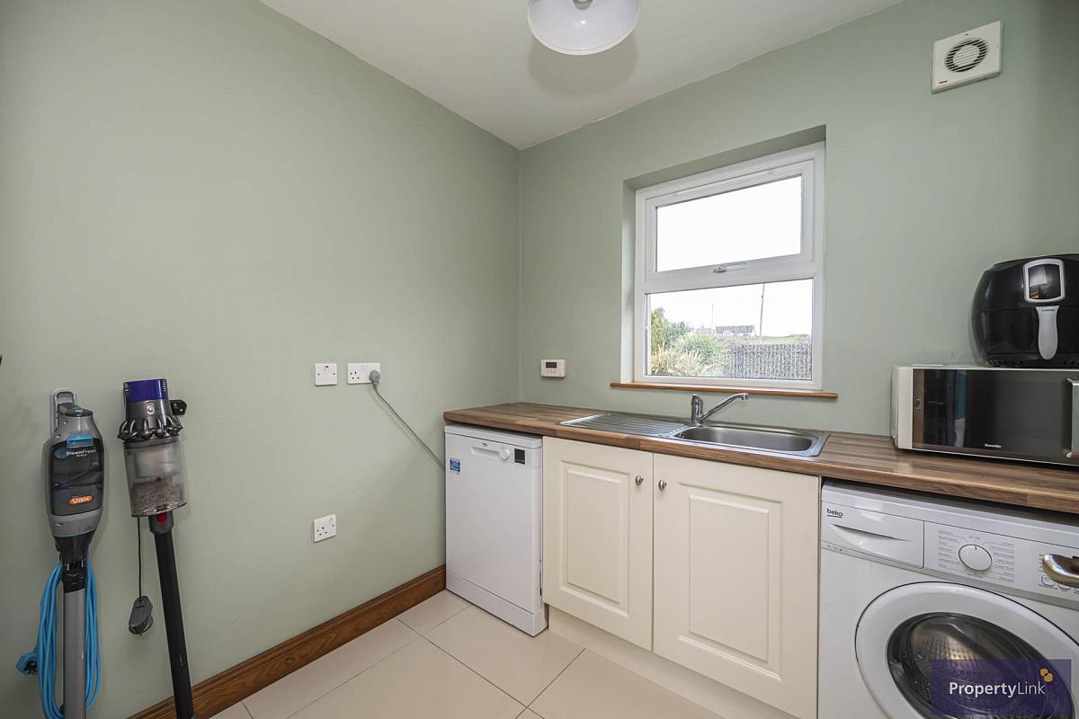 Composing of fitted units to include stainless steel sink and drainer, space to house two auto-washers, ceramic tiled floors and rear aspect window views.