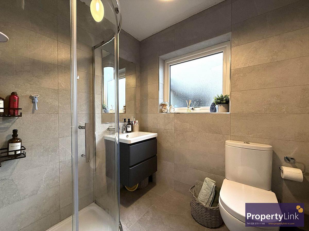 Ground floor shower room to include corner electric shower with glass enclosure, floating vanity unit with wash hand basin and mixer tap. Tastefully finished with tiled flooring.