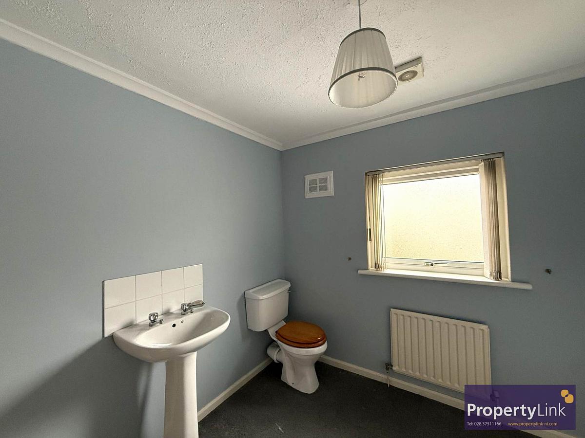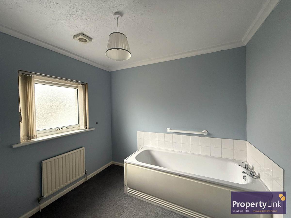 Bedroom converted to bathroom which includes a panelled bath, low flush wc and pedestal wash hand basin. Finished with carpet floor covering. This room has easy potential to be converted back into a bedroom.